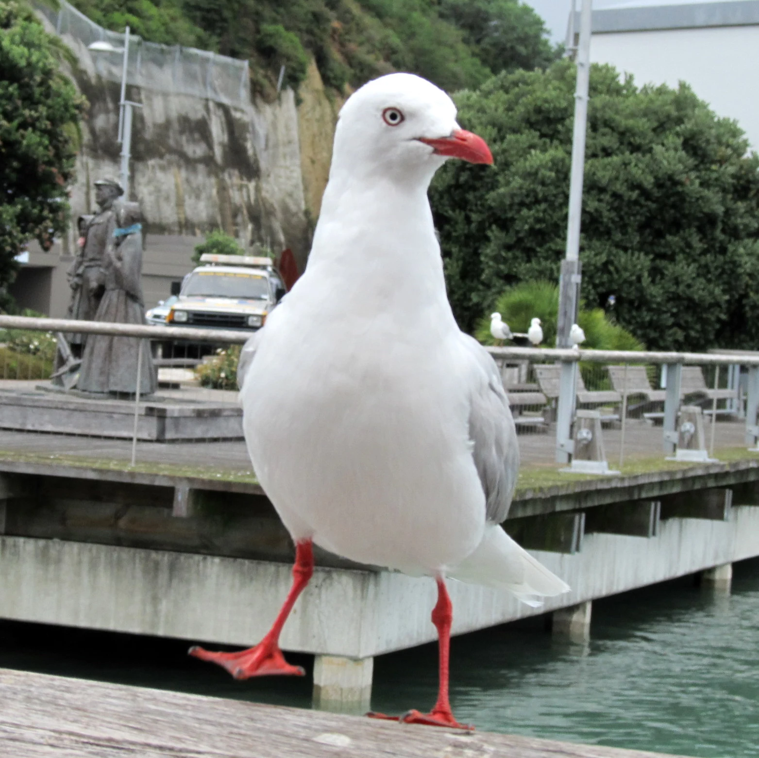 Hier ein paar "Kostproben", etwas wild durcheinander fuer euch. Beachtet das wunderschoene Muster auf den Fluegelendenfedern der einen Moewe! Kia ora