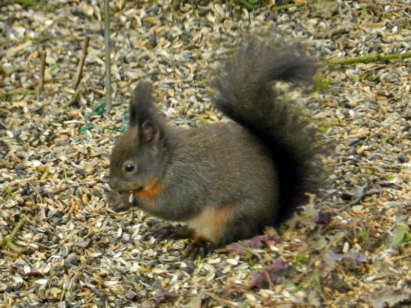 und futterte in aller Seelenruhe die Körner am Boden unter dem Futterhäuschen zusammen.