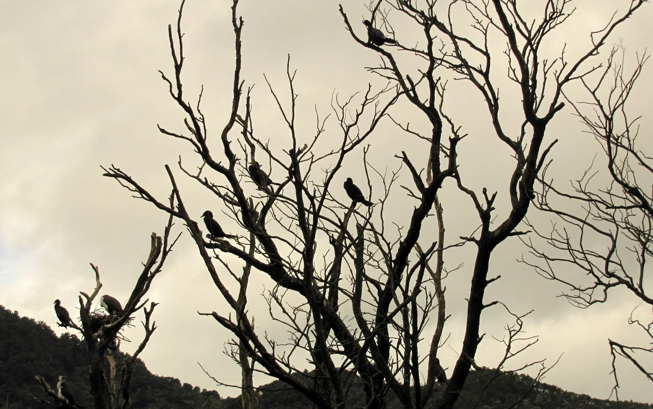 Beim Vergrößern des Bildes erkennt man die Kormorane.