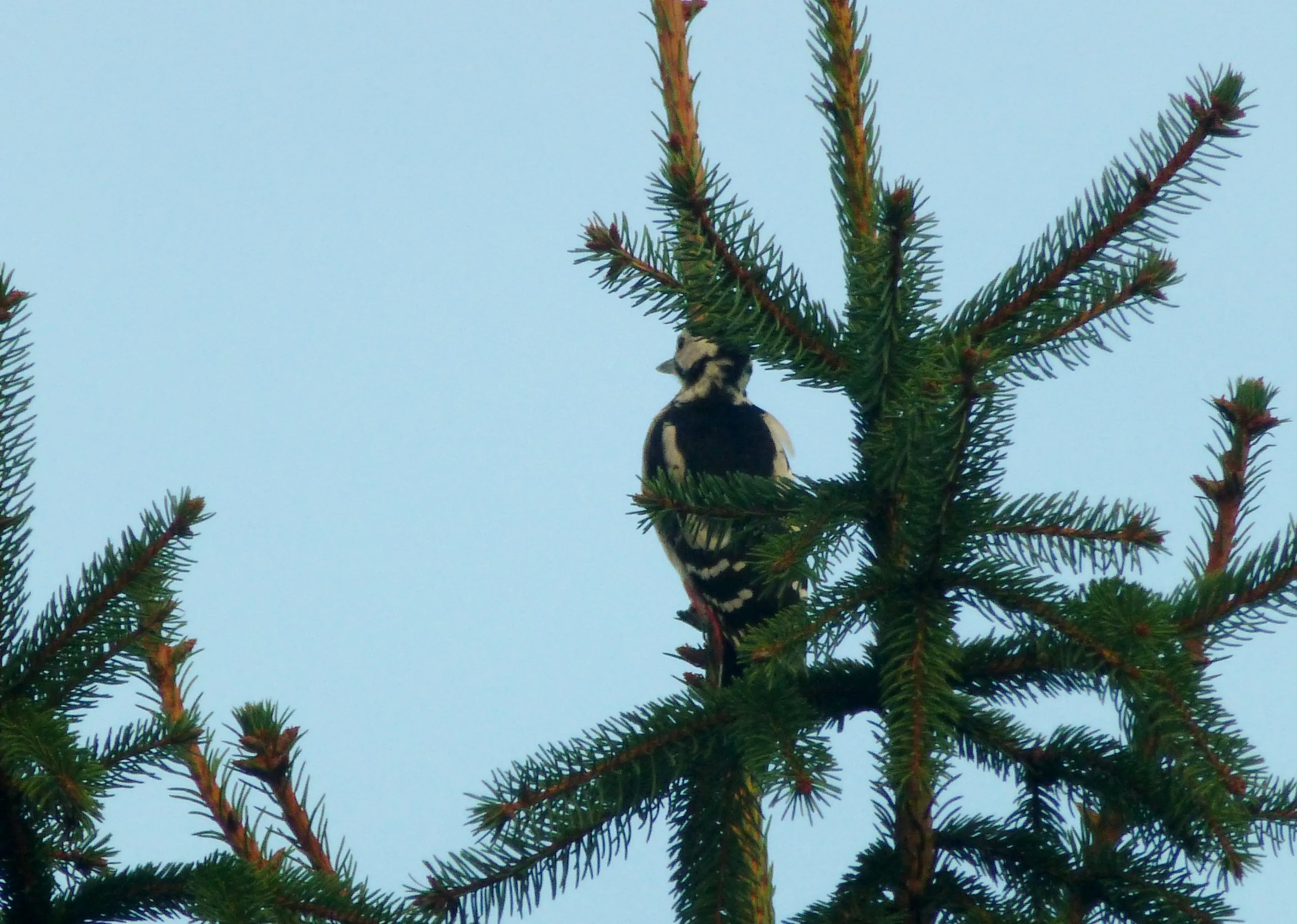 Wer hat mich entdeckt - ich bin der Buntspecht.Mein Artgenosse,der Grünspecht macht mit seinen Lachen ein Radau und er hoppelt unten rum,das weis ich genau,da er gern Ameisen verspeist.Deswegen habe ich ihn mit meiner Digi nicht erreicht. LG Monika