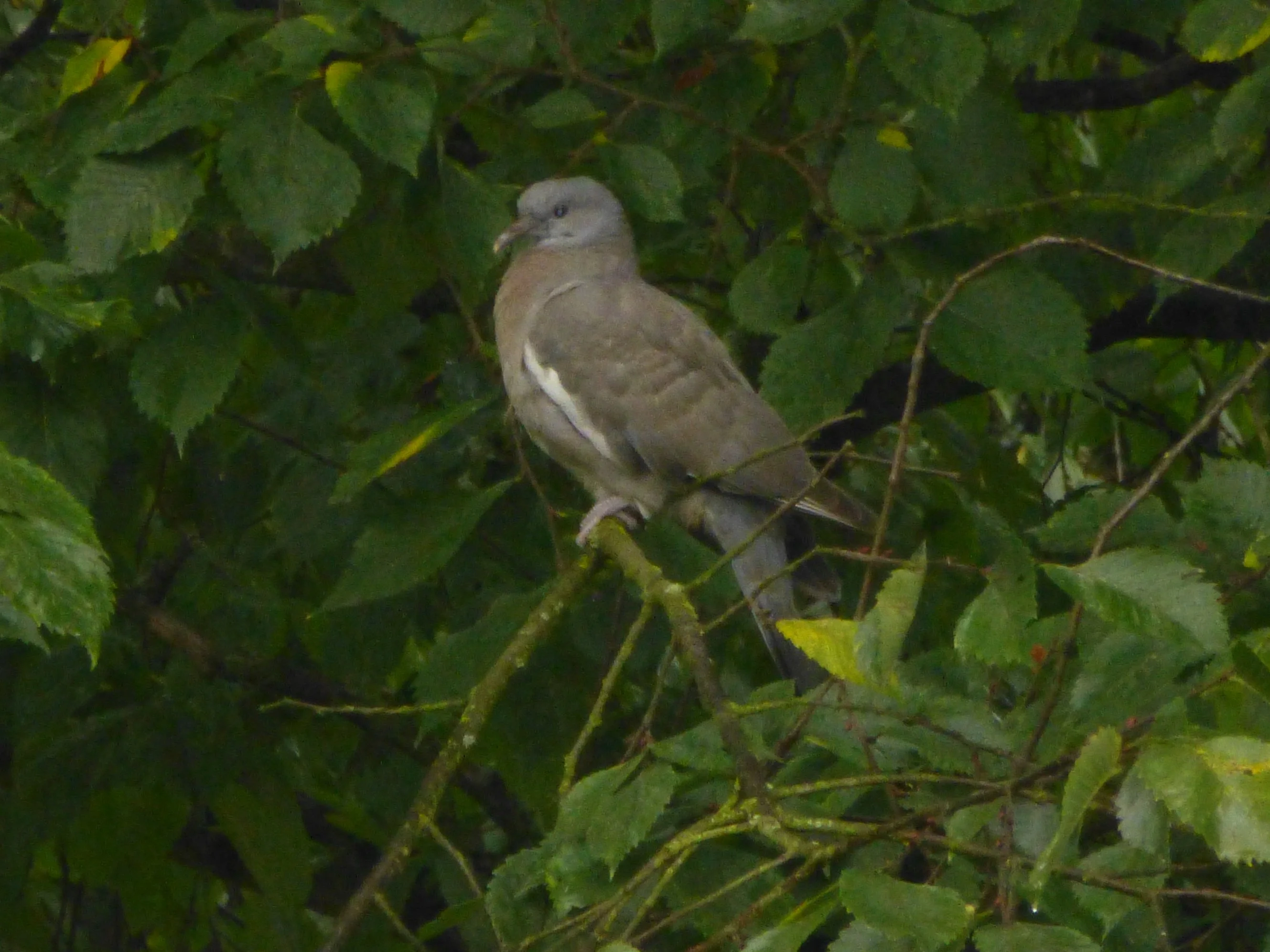Ringeltaube beim unterstellen,vor den Regen erwischt.