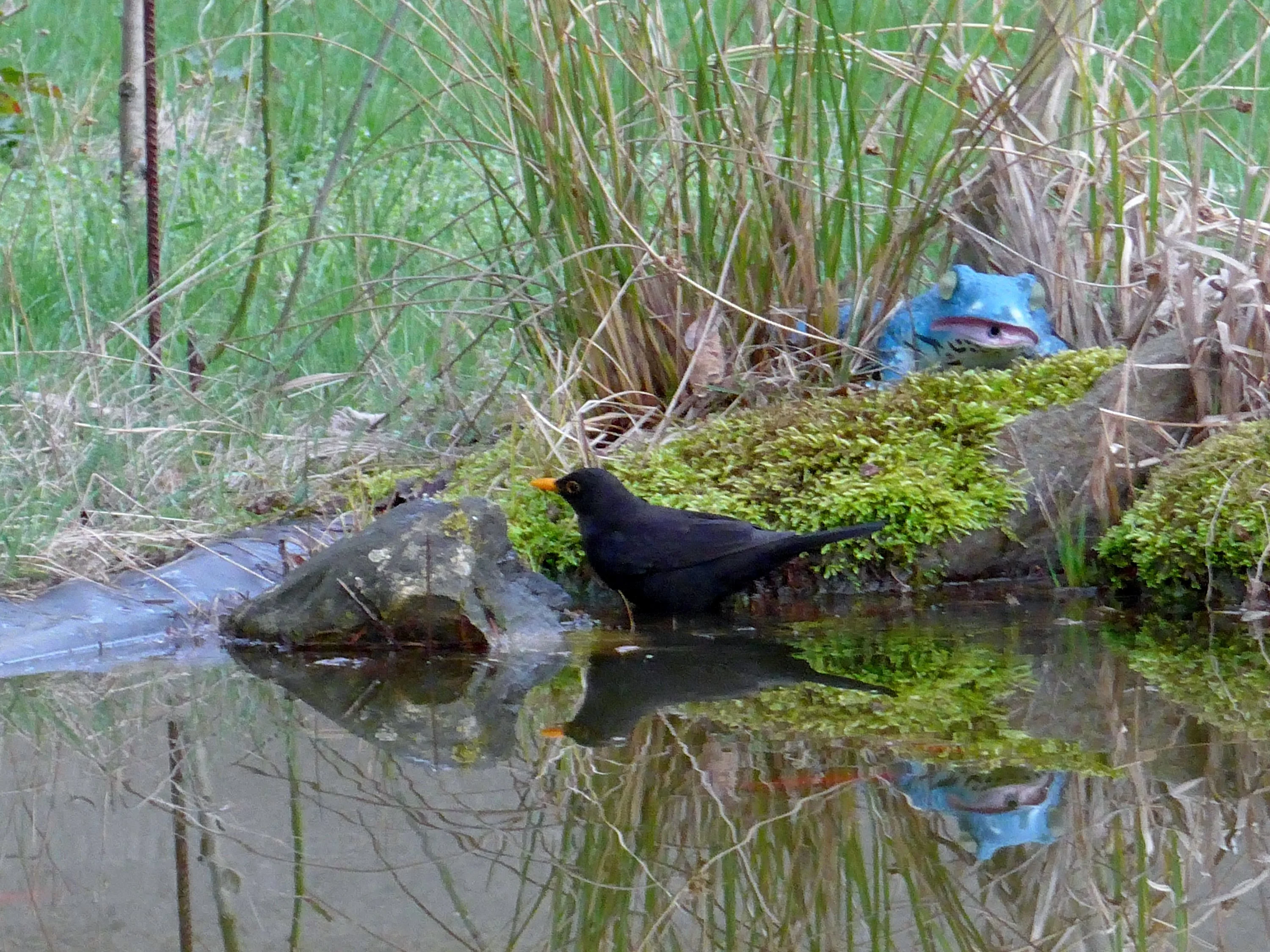 Ich zeige euch heute den Badetag,der Singdrossel und der Amsel,an unseren Gartenteich. LG Monika