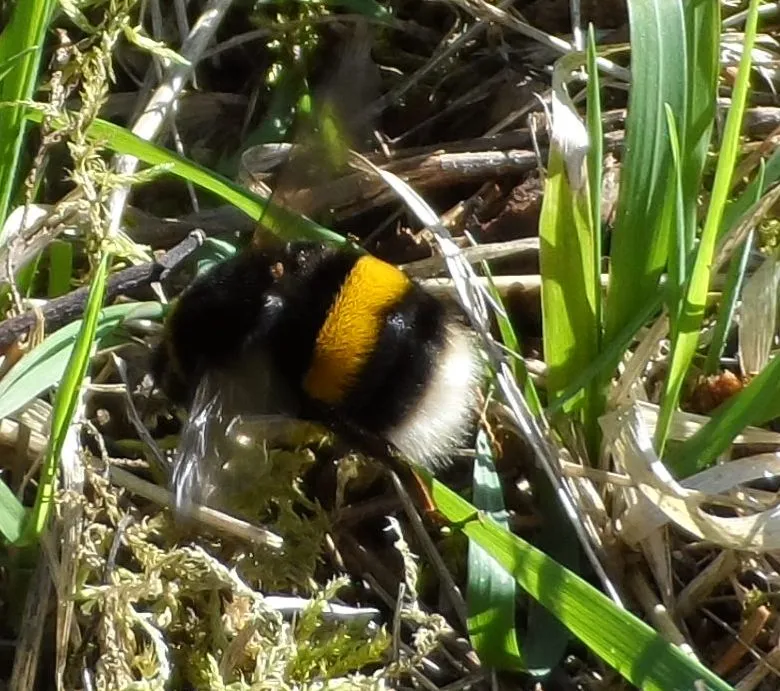• Ich habe heute (wahscheinlich) eine Erdhummelkönigin beobachten können. Sie hat unsere Wiese untersucht und ist am Schluss in einem Erdloch verschwunden, aus dem sie vorerst nicht mehr hervorkam.