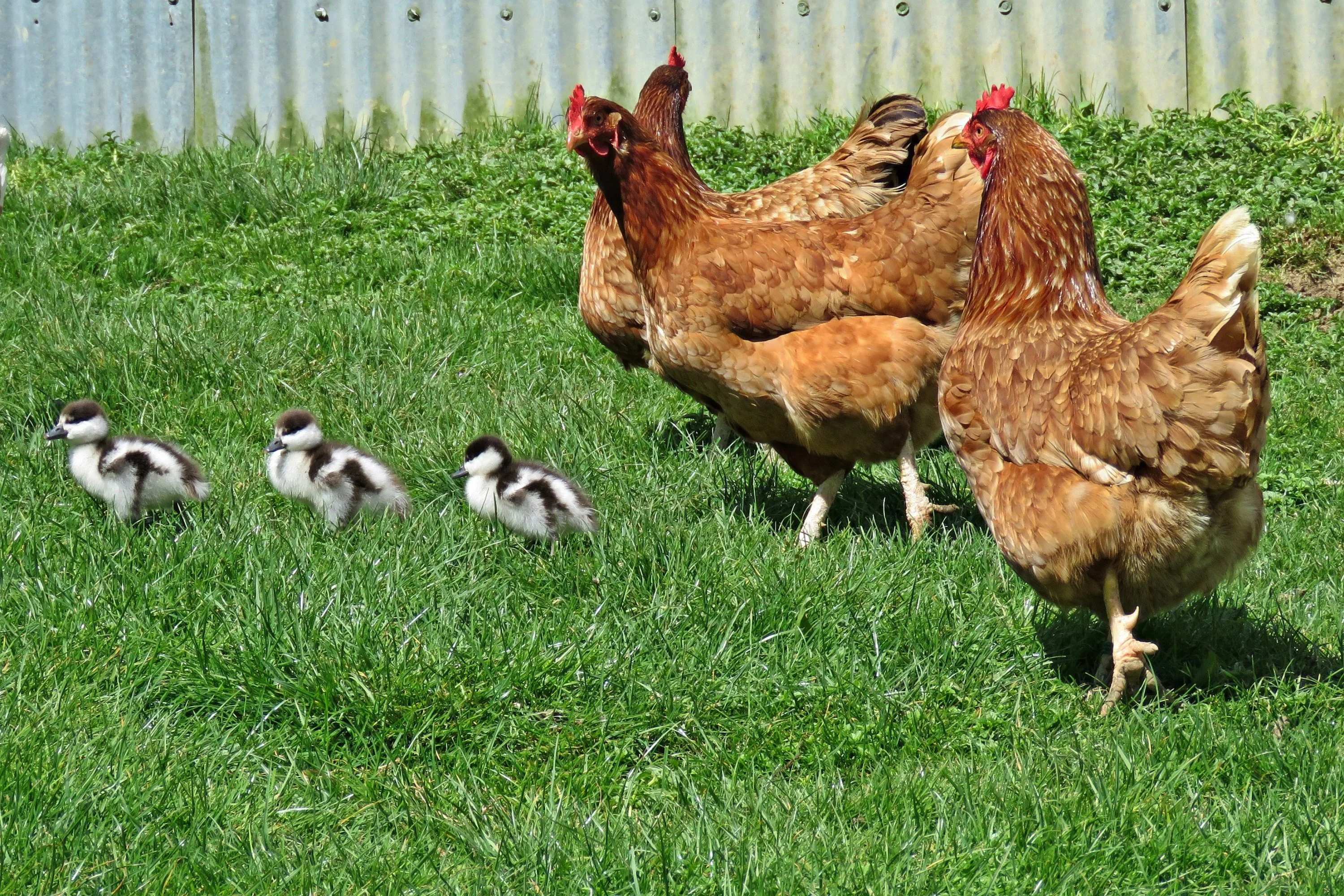 Oder die Entenmama hatte die jungen Nervensägen satt und hat sie einfach an die Hühner weitergereicht? ;)