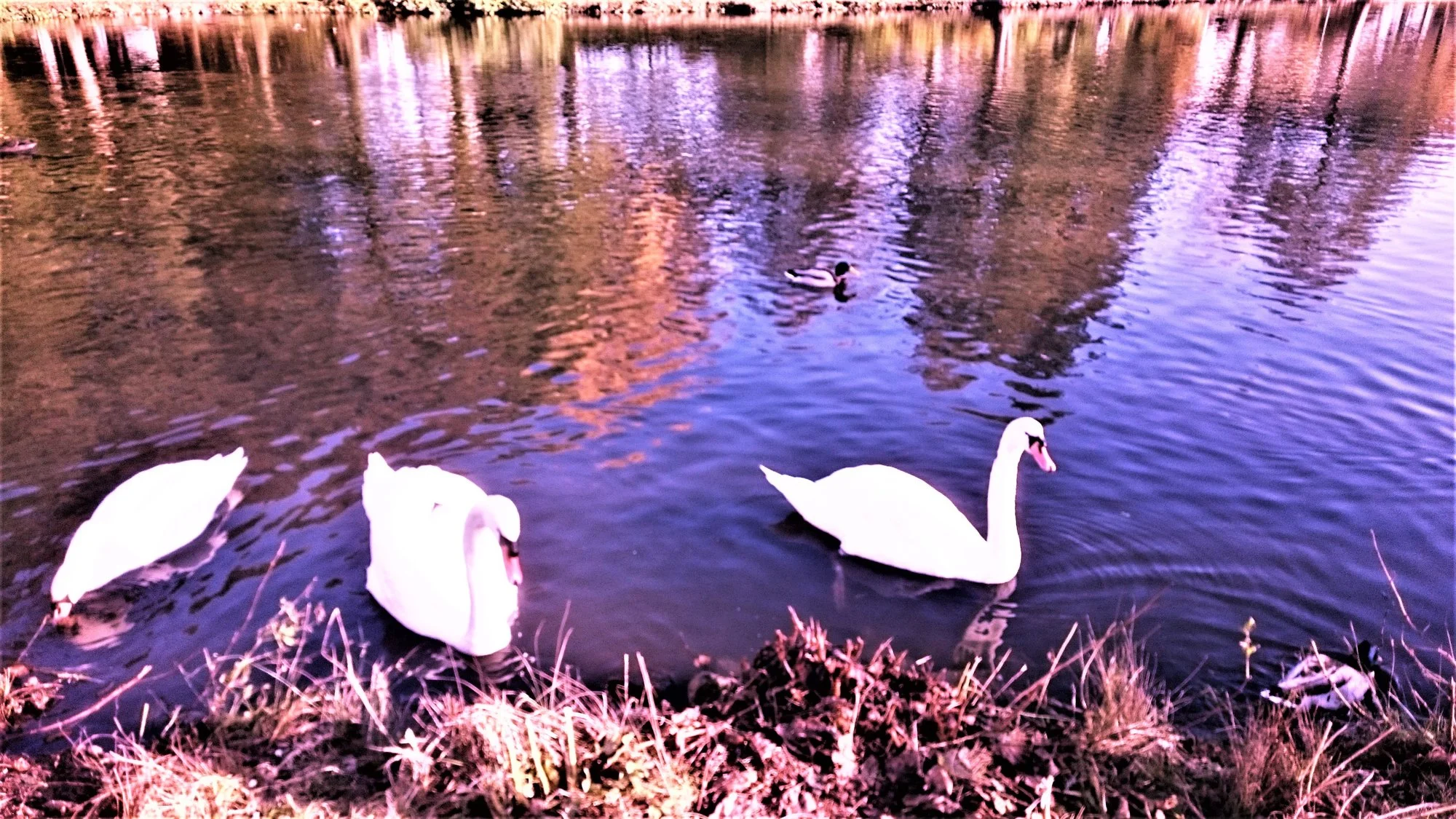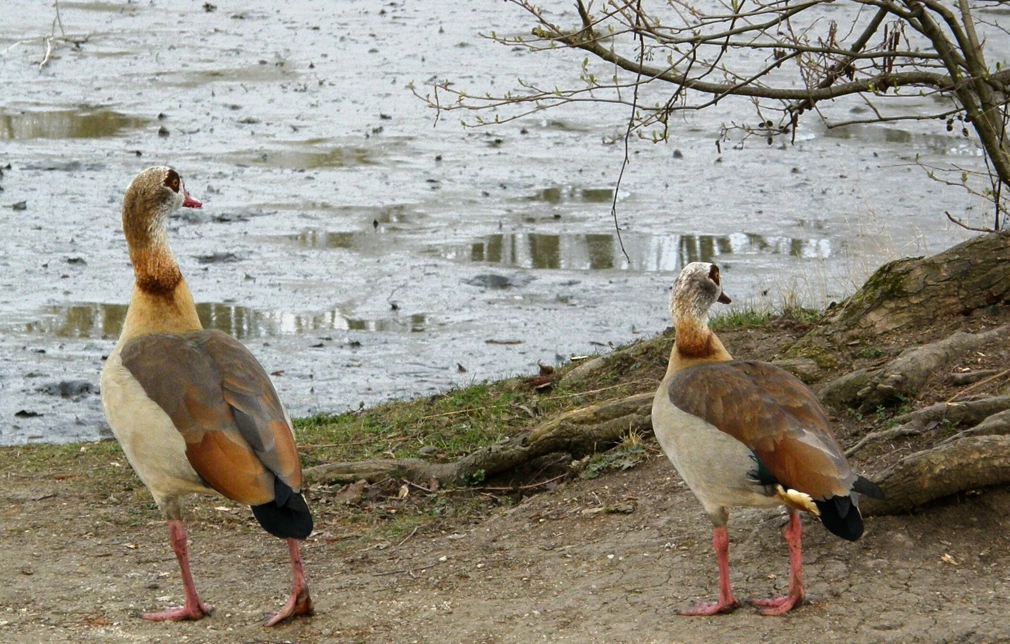 Ja, das fand ich auch. Bisschen komisch war's aber auch, weil die Gänse sich für mich als unerwartet ausdrucksvoll erwiesen, wie sie da so standen ... sie waren aus dem Gesträuch marschiert gekommen, von wo man das Wasser bzw. den Schlamm nicht sehen konnte, weil sie einen Weg überqueren mussten, der erhöht lag, und als sie den hinter sich hatten, die Bescherung vor Augen, blieben sie schlagartig starr stehen ...