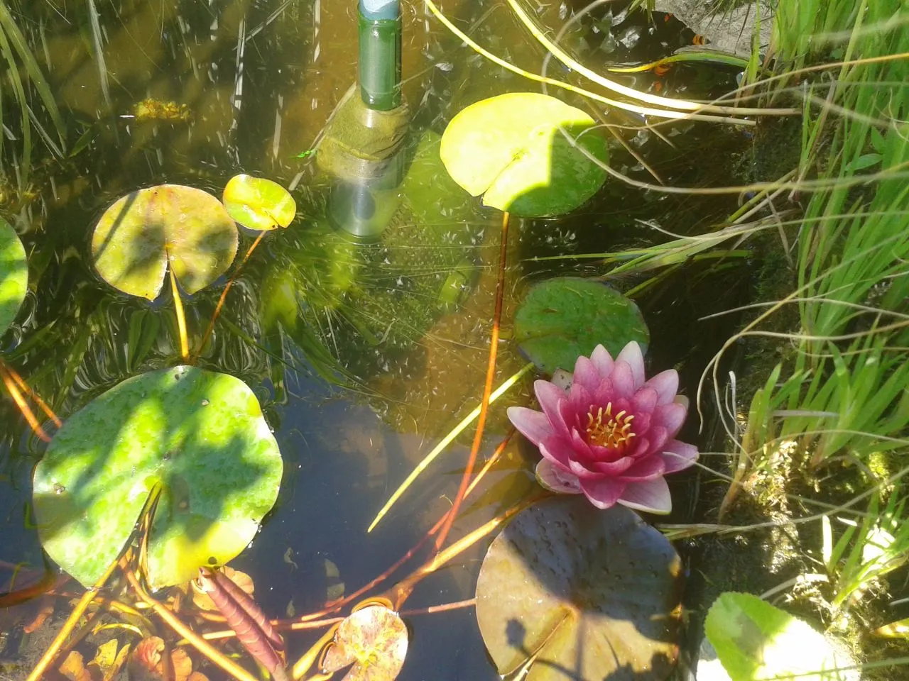Das sind vorerst die letzten Gartenfotos. Habe noch mal den Teich mit Trinkwasser aus der Küche aufgefüllt, damit nicht alles darin sterben muß.