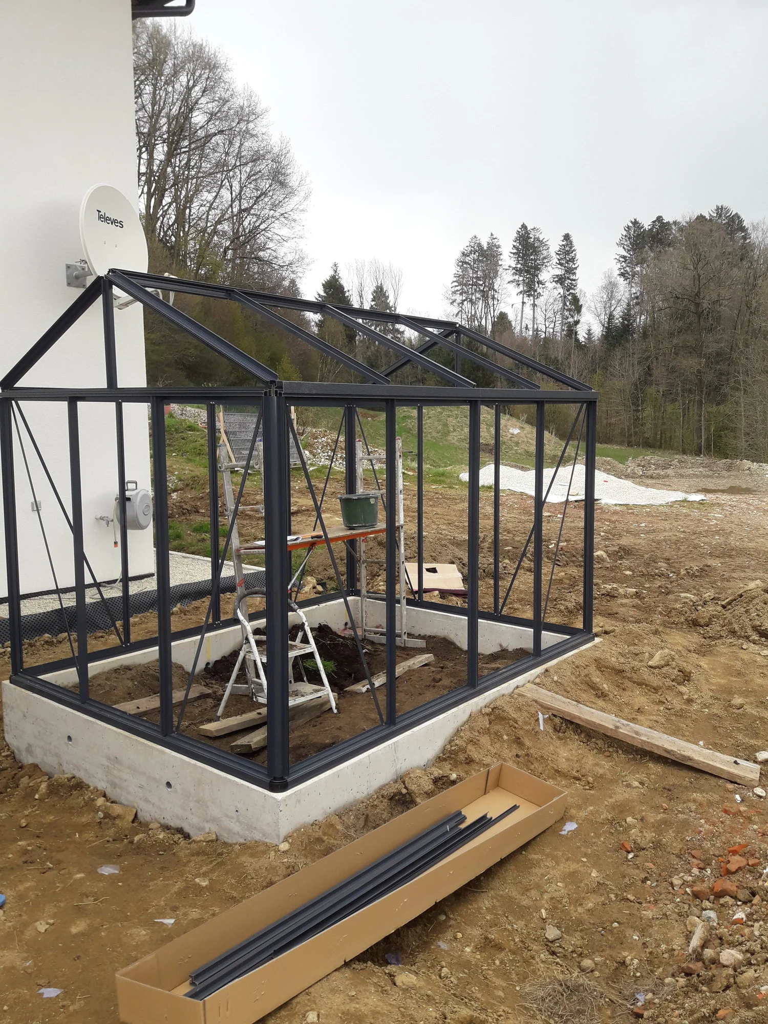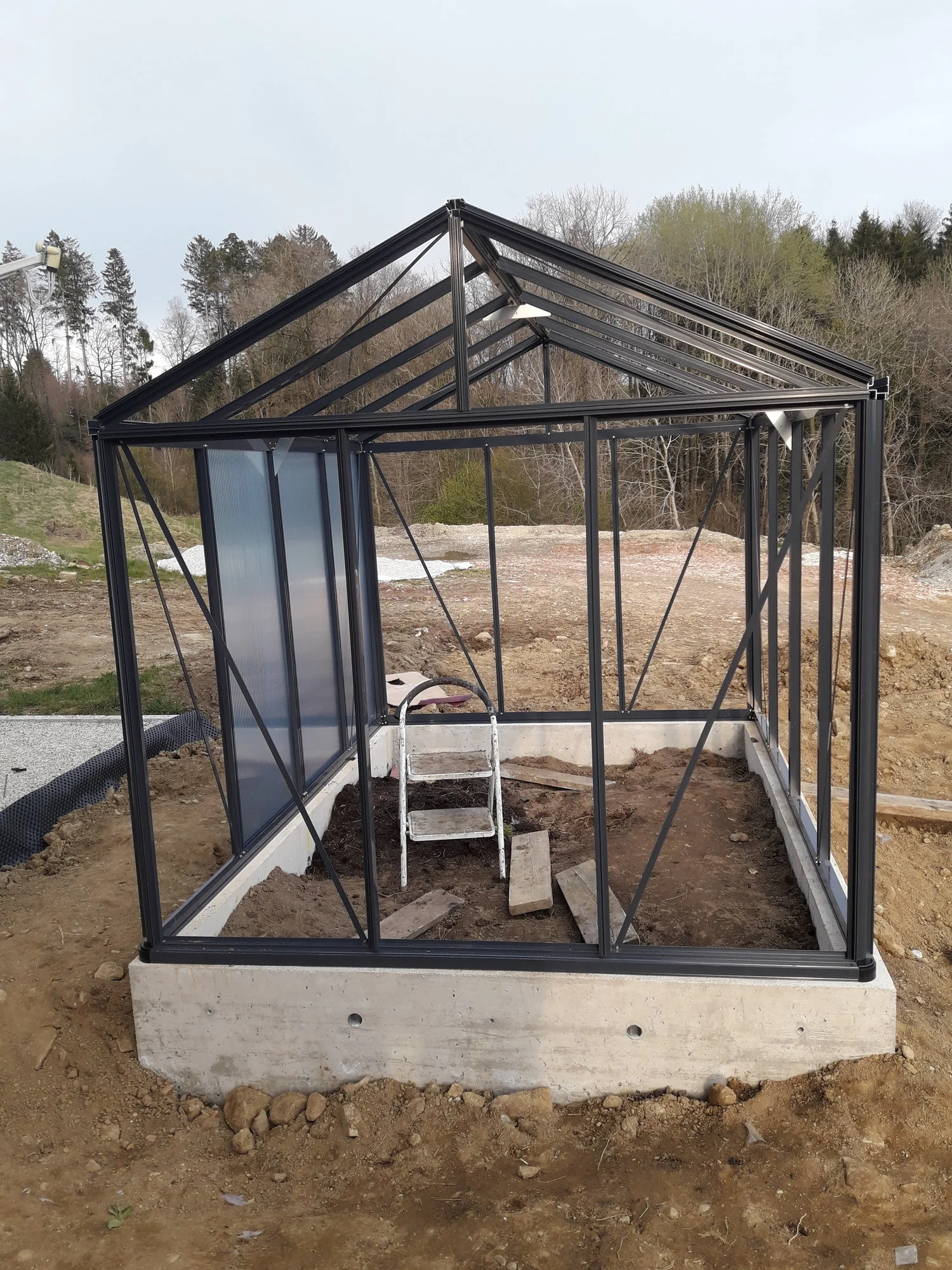 Zudem wird ein reines GWH aus Glas sehr heiss in der Mittagssonne und in der Nacht sehr kalt. Und ein Glashaus Beschatten ist ja auch nicht der Sinn der Sache,...