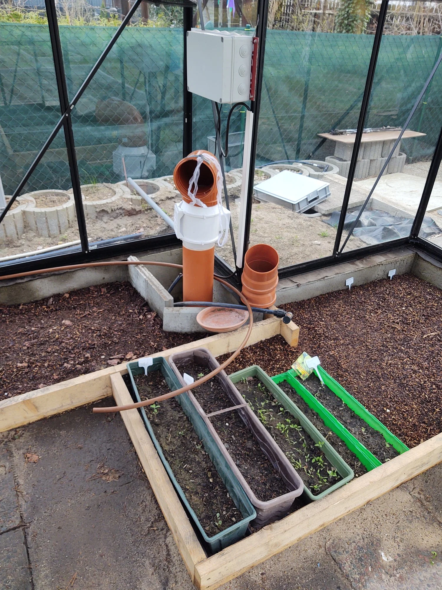 Aber auch trotz der teilweise Minusgrade in den letzten Wochen kommt schon pflücksalat und Radieschen... Anzucht unter der Lampe geht nur im Haus...