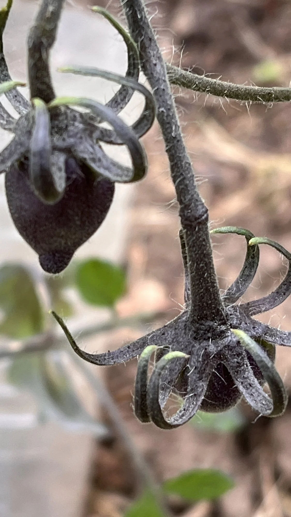 Das ist eine feine Zwergtomate, 30-40cm hoch, kleine Pflanze - aber wie man sieht, große Früchte :love: um die 30 Gramm. Das sind richtige Brummer, keine Murmeln... und schmecken. Und sehen so hübsch aus, goldgelb mit den lila Streifen.