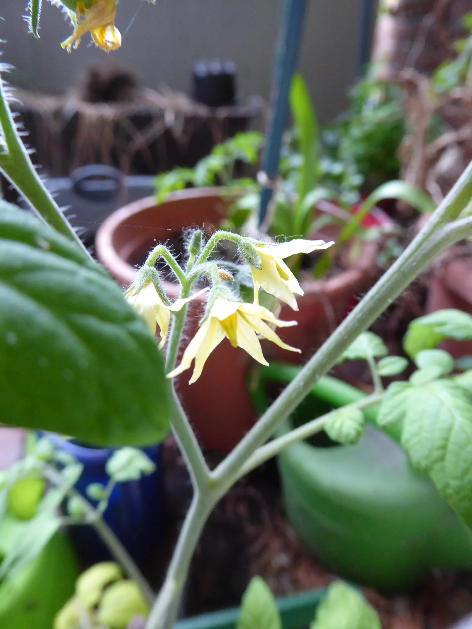 Die Fleischtomaten blühen bei mir noch nicht so lange, aber Marha's Starfighter Heart setzt überraschend viele Früchte an und auch Sweet Caramel Sofia knubbelt brav vor sich hin.