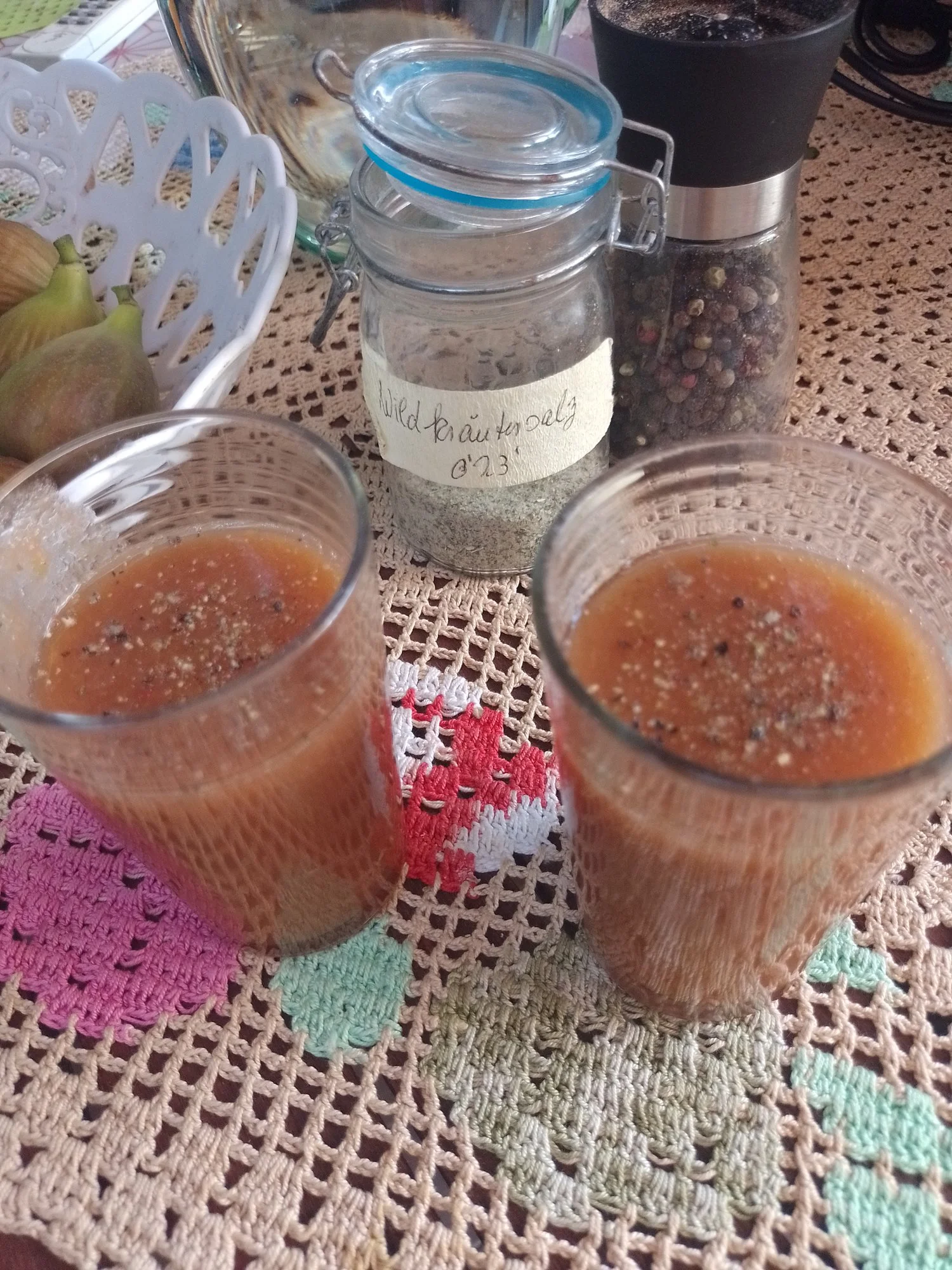 Tomaten waschen, stiel raus und ab in den mixer, hab mich von @Golden Lotus anstecken lassen.