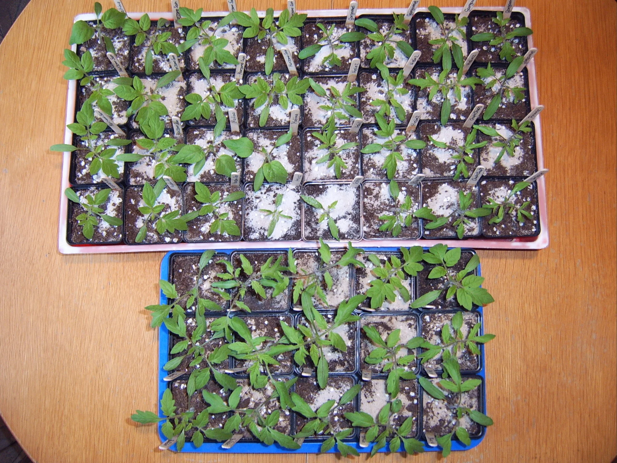 Hier wachsen aktuell 77 Tomatenpflänzchen, 17 kleine bzw. Keimlinge müssen demnächst noch pikiert werden vielleicht kommt noch das ein oder andere dazu.