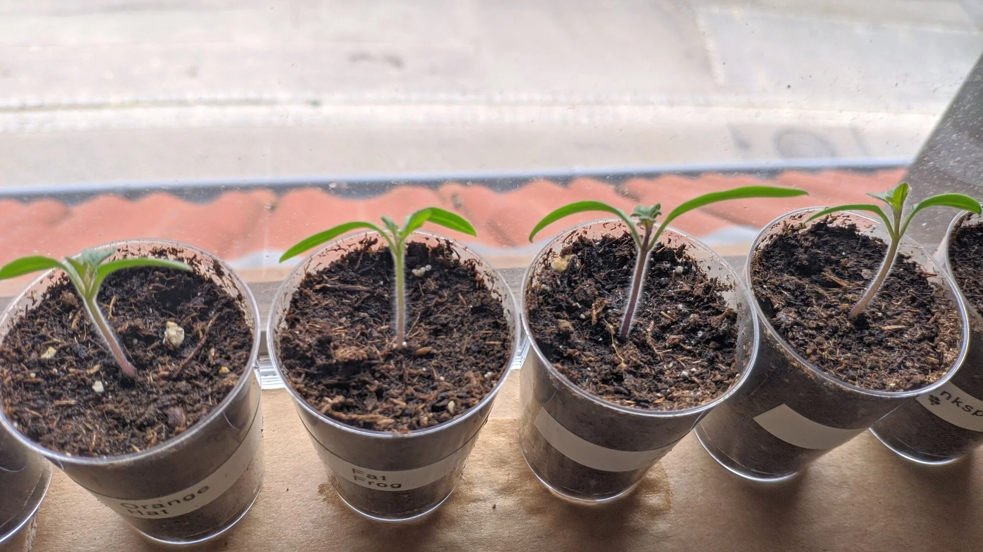 Hast Du direkt in Erde gesät, ja? In Schnapsbecher?Hier mal ein paar Fotos von den Babys...