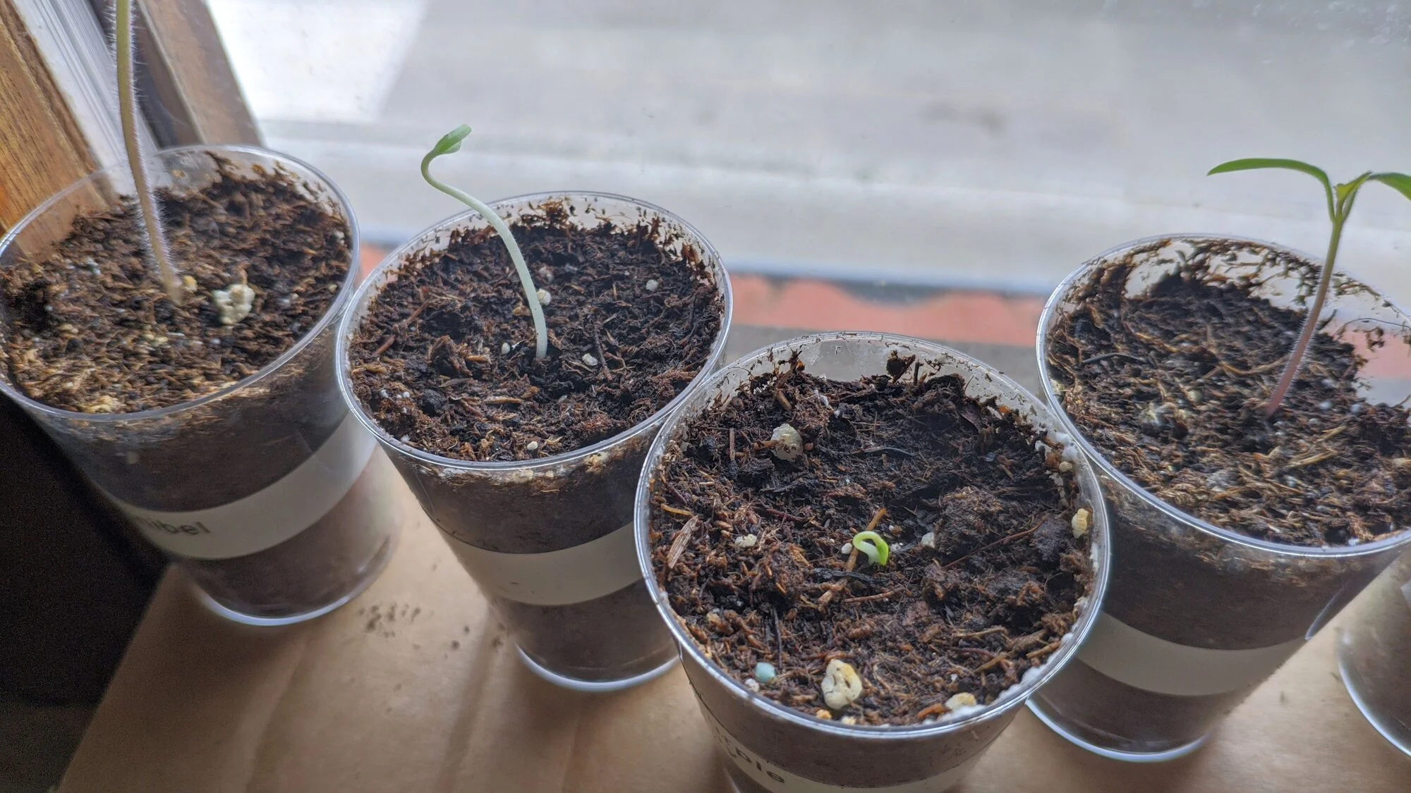 Ja, genau!Hast Du direkt in Erde gesät, ja? In Schnapsbecher?