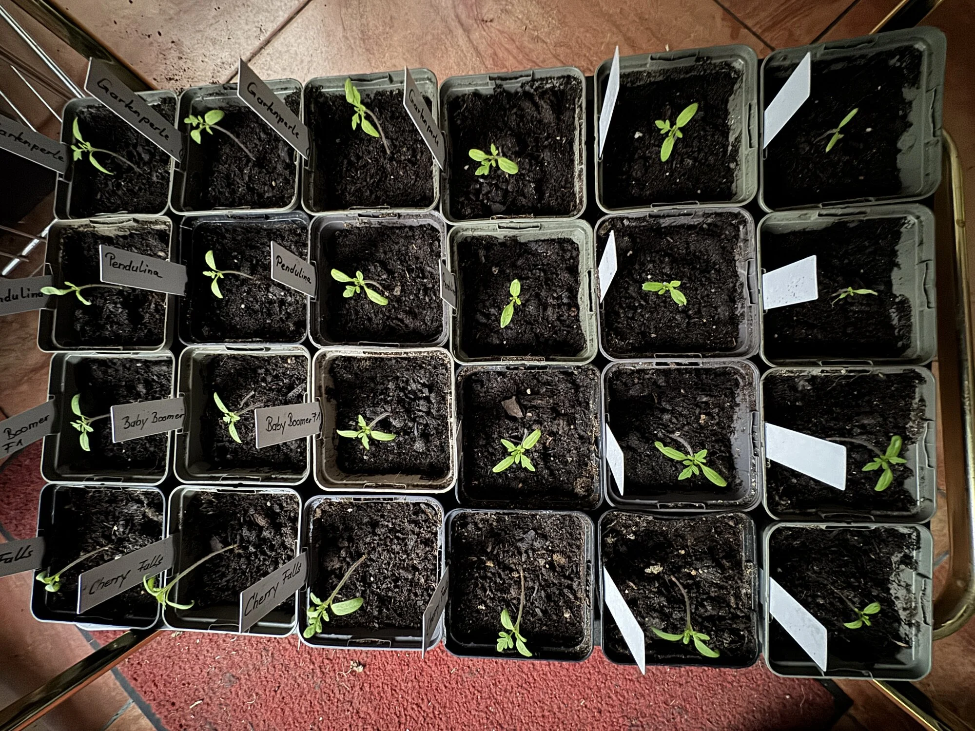 Bei mir auch. Meine Tomädchen wurzeln schon ordentlich in ihren Schnapsbechern herum.Hier wirds langsam schon Zeit, die ersten Tomätchen umzutopfen...