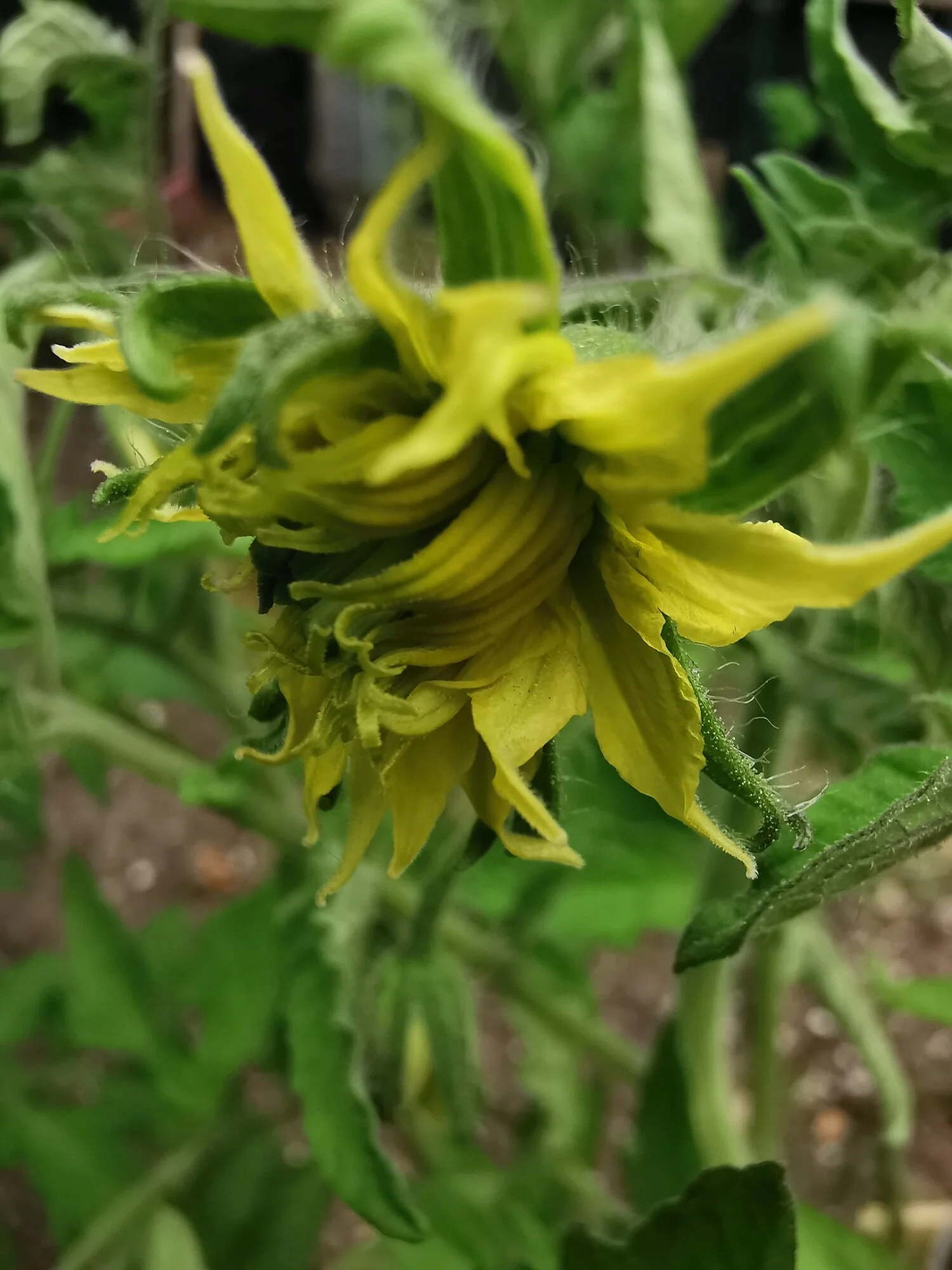 Das untere ist eine „Monsterblüte“ = Blüte mit mehreren Fruchtknoten / verwachsenen Stempeln. Ich mache die immer ab. Die Früchte sind oft total verwachsen, viel Abfall. Und sie brauchen oft ewig, bis sie reif werden und bremsen alles aus.Gestern im Walipini