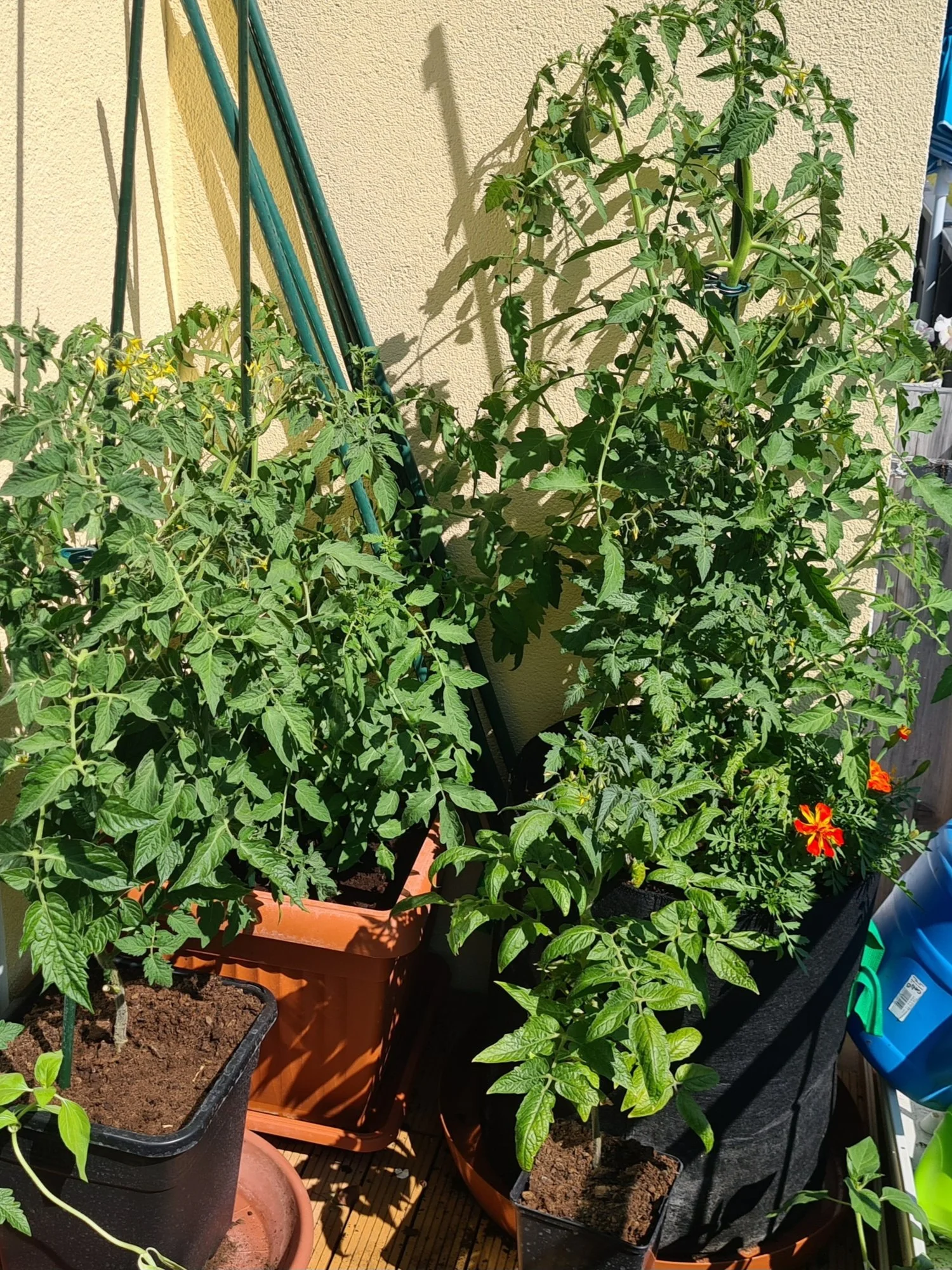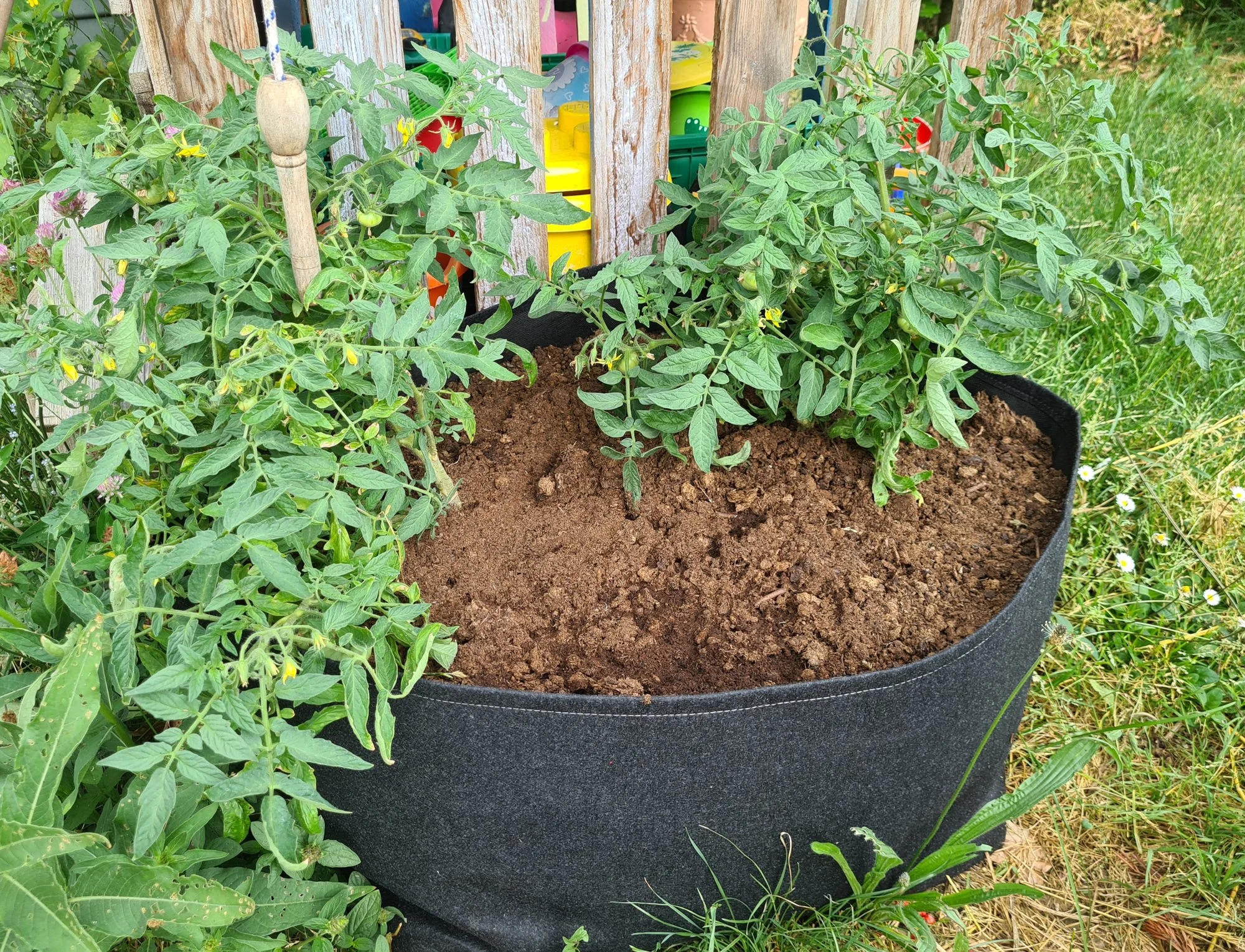 Hier wohnen auch vier Tomaten in zwei Pflanzsäcken (à 75 und 100 Liter) und denen gefällt es ebenfalls.