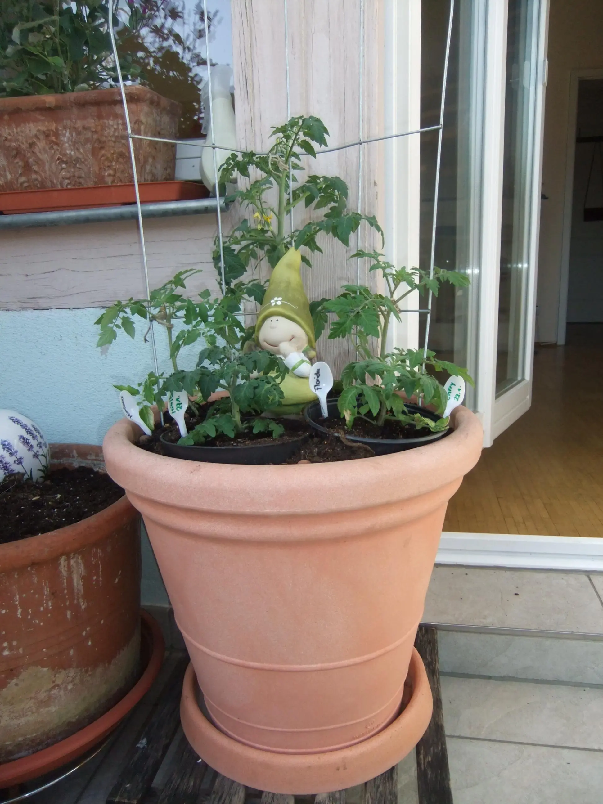 anbei ein paar Bilder von gestern, als meine Tomaten vom Balkon endlich in die (fast) freie Natur durften... ein paar Frage dazu...
