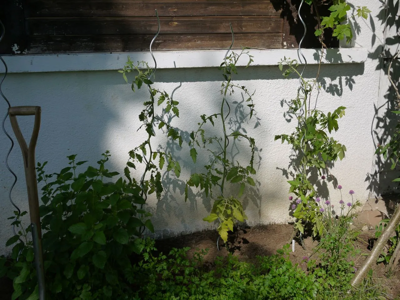 Morgen möchte ich am Dachvorsprung Schnüre befestigen und die Tomaten dran hochleiten und wenn meine Töpfe zu klein sind wäre es gut sie vorher noch umzusetzen.