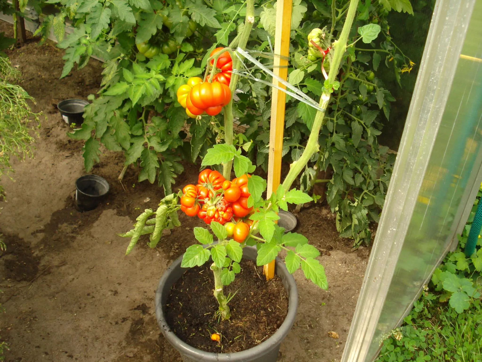 Aber sag mal, was ist das für eine tolle Fleisch-Tomate auf dem letzen Bild, ist das die Nonna? Oder die Reisetomate? Was für ein seltsam verwachsenes Exemplar von Frucht da ganz unten dranhängt, super skurril!