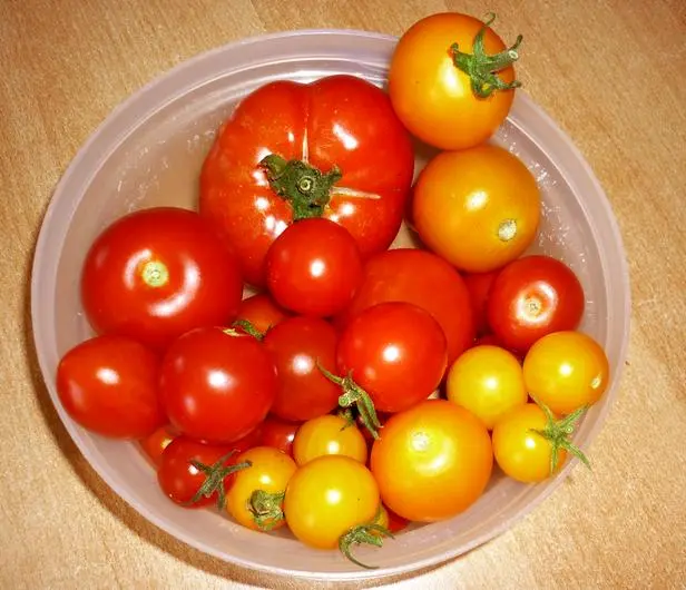 Ernte von gestern abend/heute morgen (die goldgelben kleinen sind die Tumbling Tom Junior Yellow - erstaunlich gut)