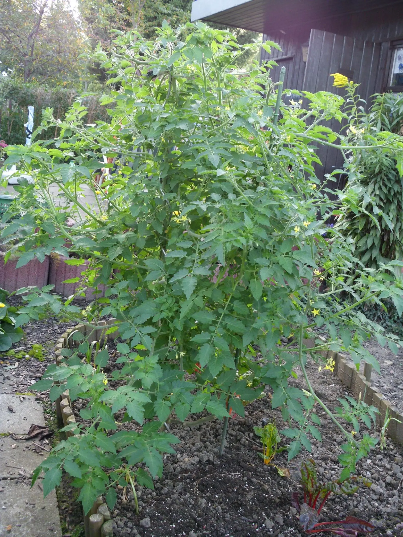 Ironischerweise ist das die einzige Tomatensorte,die ich überhaupt nicht mochte.Ich hab der schon etliche Male die Triebe radikal gestutzt,aber sie hat so einen Überlebenswillen,dass ich sie jetzt voller Respekt wuchern lasse.