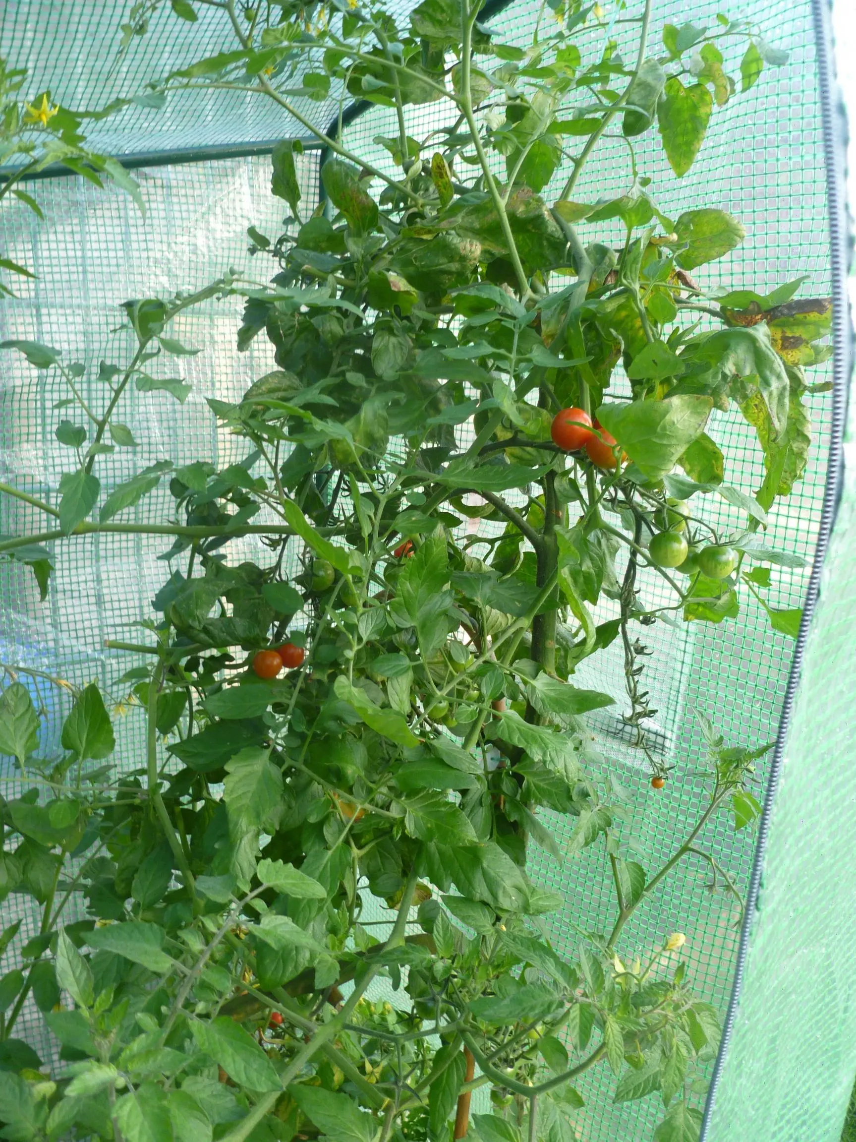 Meinen Tomaten geht es trotz Mitte Oktober bei Nachts 2-5 Grad und tagsüber bei ca. 8-12 Grand super gut. Hier mal ein paar Bilder. Unten rechts, die Tomate hat Ende August wieder geblüht und nun sind wieder schöne Cocktailtomaten dran, rot werden sie sicher bald. Unten links die steht im Freiland und hat schon soooo viel Regen und Wind abbekommen, was ihr aber scheinbar nichts ausgemacht hat :-)