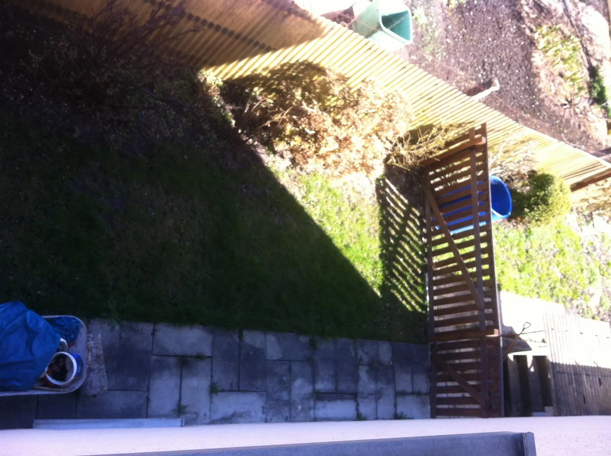 Also das Gewächshaus steht dann auf der Ostseite des Hauses. Auf den folgenden zwei Bildern könnt ihr den Schatten um 14:45 Uhr (links) und 9:40 Uhr (rechts) sehen. Im Sommer könnte es eventuell etwas besser sein, wenn die Sonne höher steht. Es sind also etwa 4 Stunden direkte Sonneneinstrahlung.