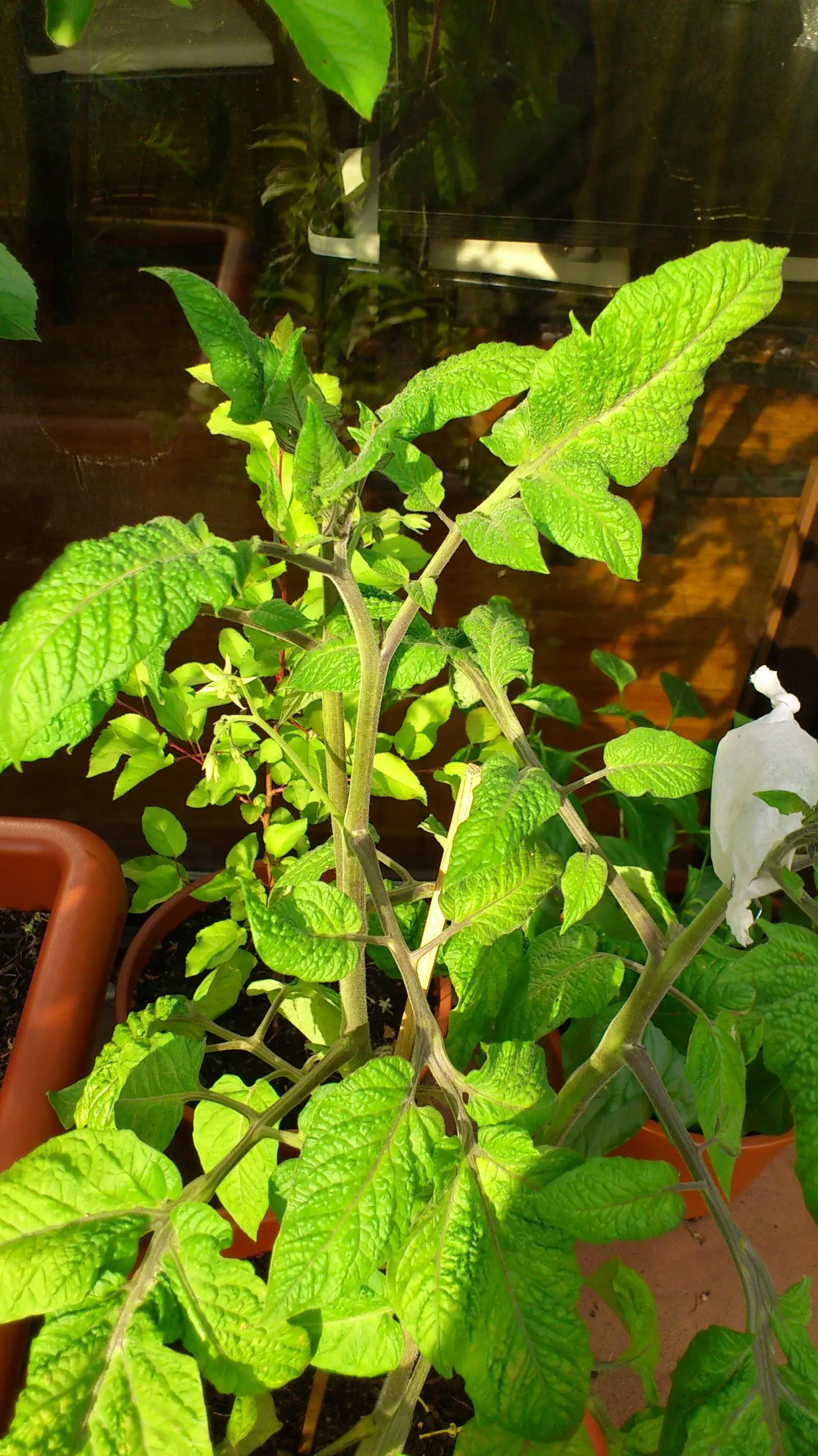 • Solange die voll (wirklich voll) mit Tomaten hängt (was sie tut) und diese rot werden, ist es mir egal wie die Blätter aussehen. Hätte sie Nährstoffmangel, würde sie wohl kaum so viele Tomaten bilden, denke ich mal. Ich tippe eher darauf, dass es ihr zu kalt und zu dunkel ist.