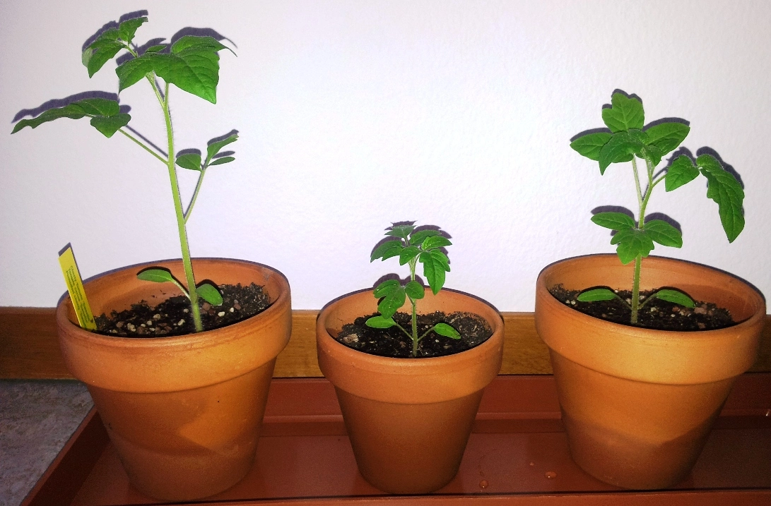 Ich hab vor zwei Wochen eine Tauschtomate bekommen (Foto 3 - der ordnet mir die Bilder nicht sinnvoll). Leider war sie ziemlich vergeilt und hatte kaum Wurzeln. Seit dem versuche ich sie aufzupäppeln.