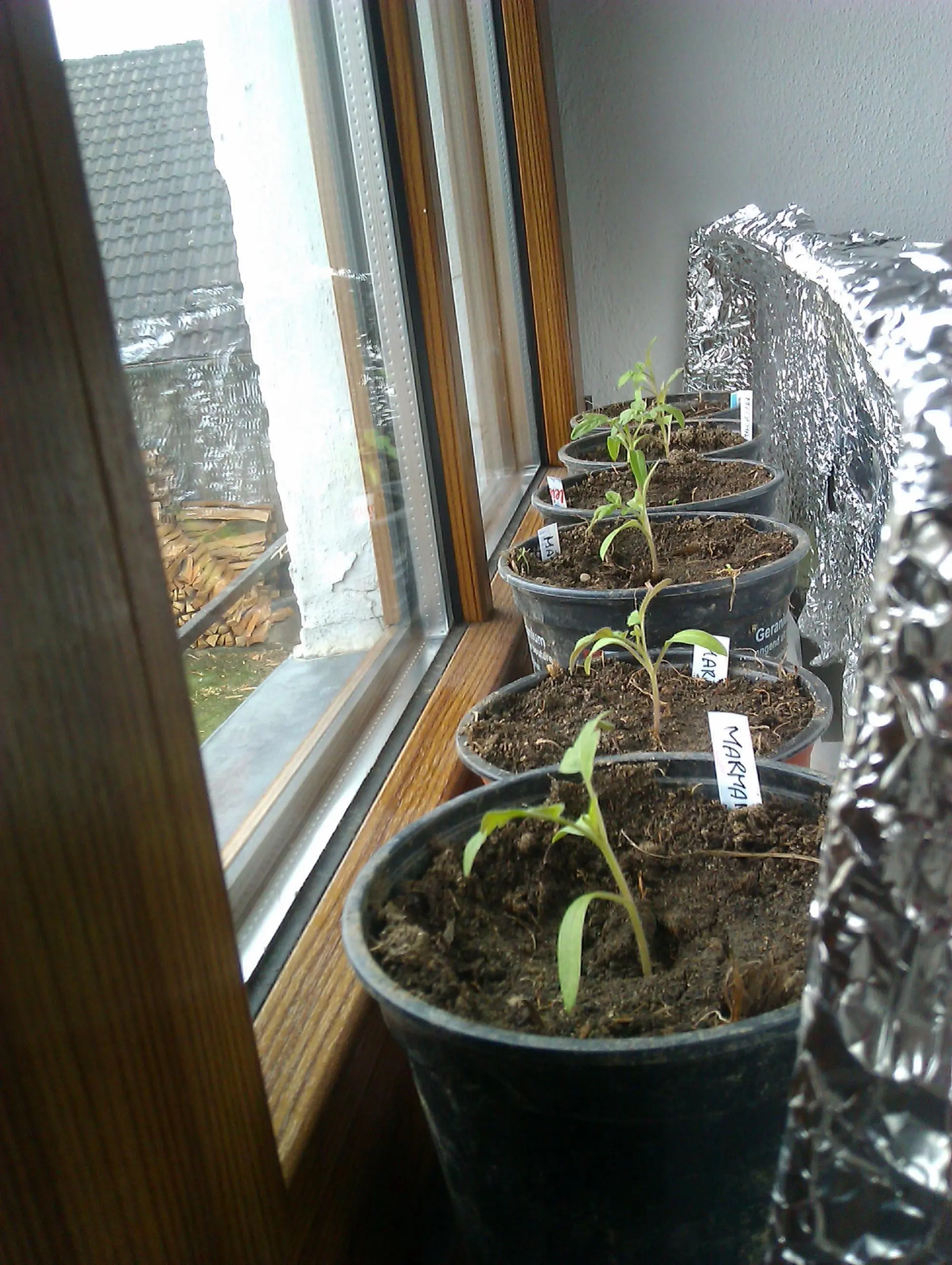 Da meine Tomaten ein bisschen spargelig werden und ich eigentlich nicht künstlich Beleuchten möchte, teste ich mal die Tipp mit dem Reflektor aus Alufolie, den ich hier im Forum mal gelesen habe