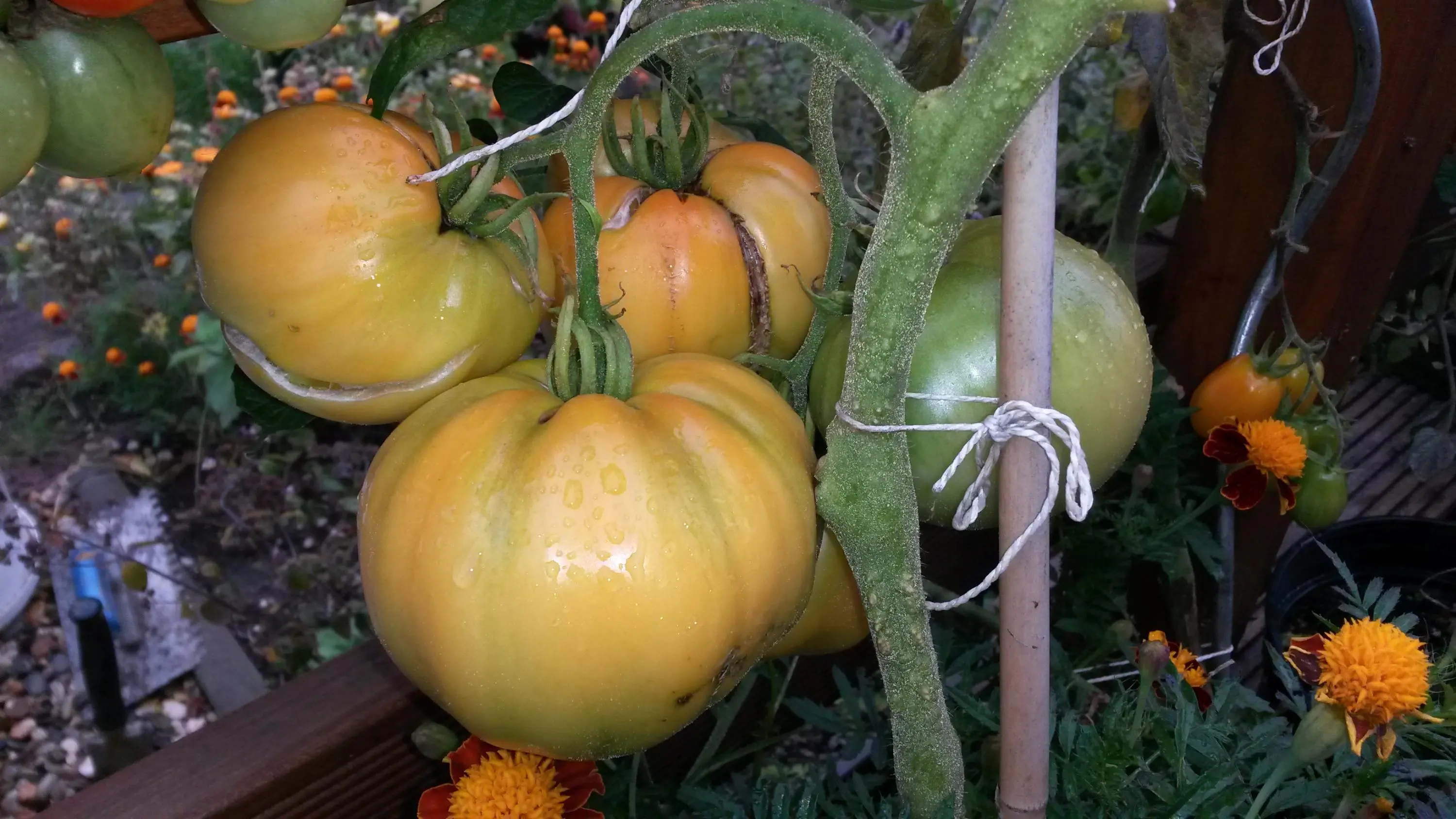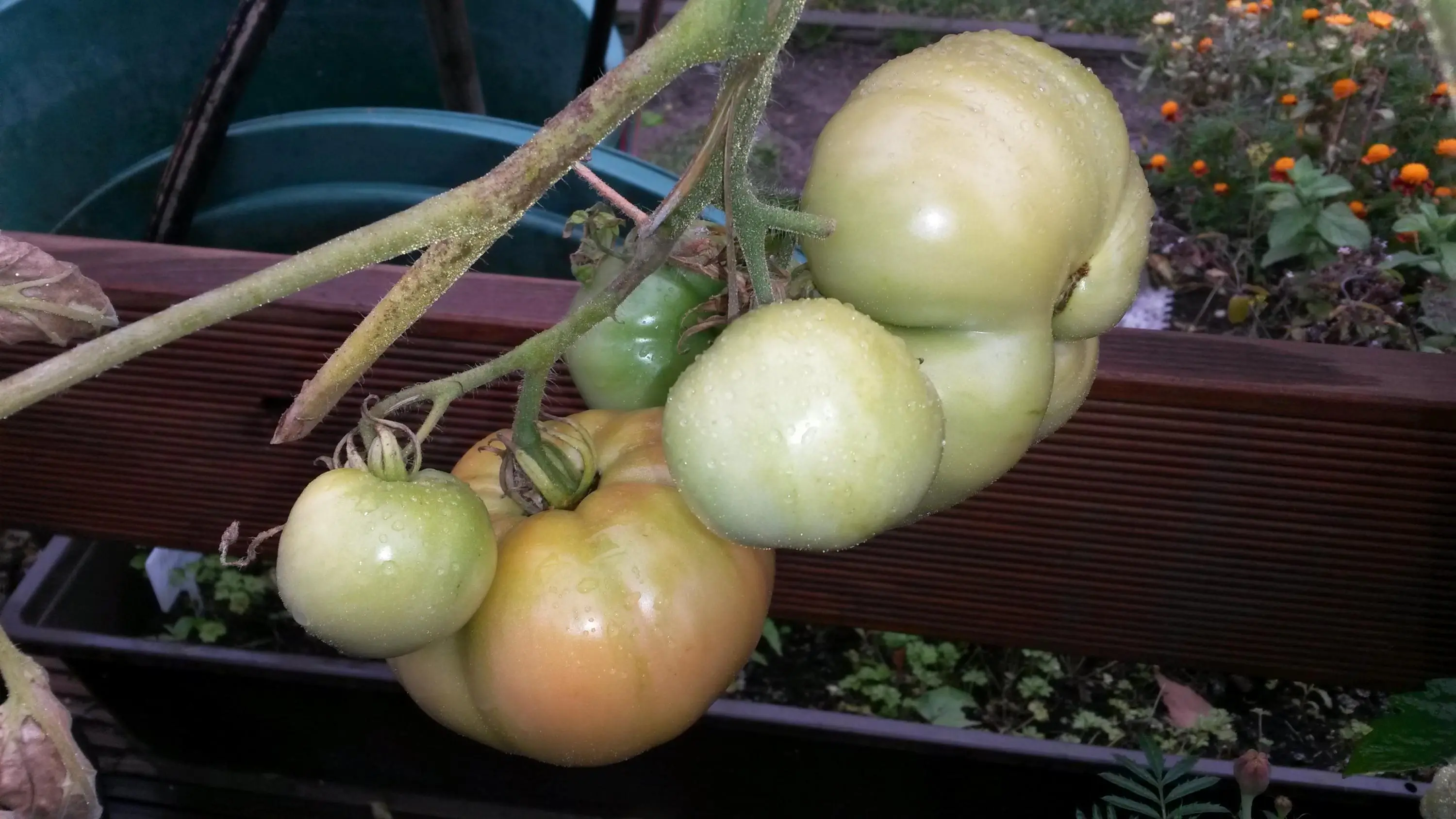 Reifen diese länglichen Fleischtomaten eigentlich jemals?? Meine Andenhorn hab ich schon zwei Wochen früher ausgesäät, weil spät reifend (Mitt März). Aber sowohl die Andenhorn als auch die Teton de Venus scheinen so gar nicht reif werden zu wollen. Die verharren im Status dreiviertel rot, oben gelb. Hab versuchsweise mal eine geerntet, aber die sind innen noch lange nicht durchgereift. Und das Ende August, wo andernorts schon mal der Frost um die Ecke geguckt hat, die Saison also langsam zu Ende geht...Daß die jungen Früche oben an der Pflanze überhaupt je was werden, wage ich zu bezweifeln. Damit habe ich von jeder Pflanze, obwol mehrtriebig vielleicht so 10 (sehr grosse) Toamten bekommen... Ist das normal?