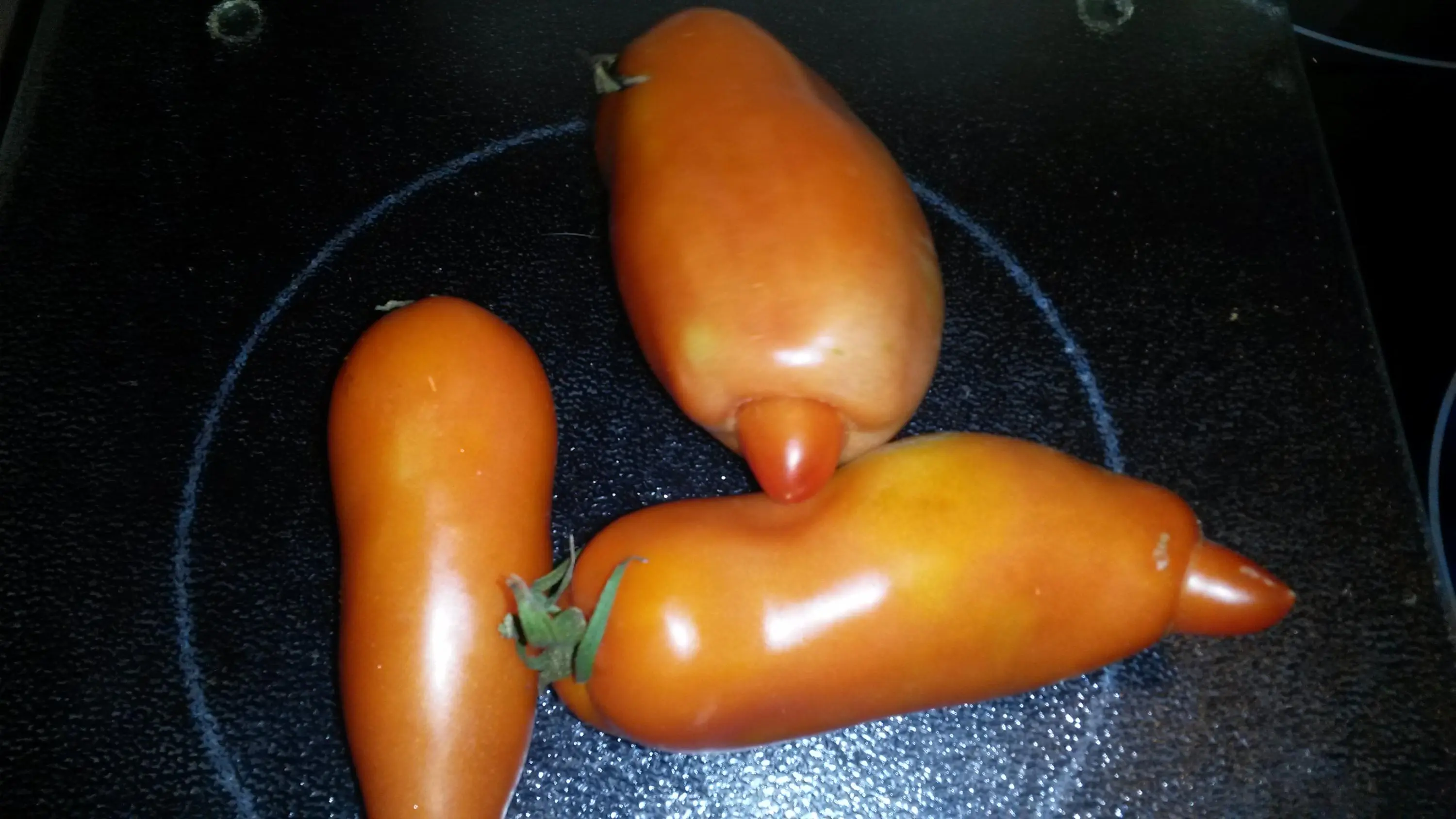 Am WE habe ich daheim in der "Hasivilla", wo auch ein paar Tomaten in Kübeln stehen, die ersten kleinen orangenen geerntet. Diese schmecken zwar gut, sind aber wesentlich weicher von der Schale. Liegt vielleicht auch am Standort. Sie stehen recht dunkel. Ist halt nur eine Notunterkunft, da wir im Gewächshaus im Garten keinen Platz mehr hatten.