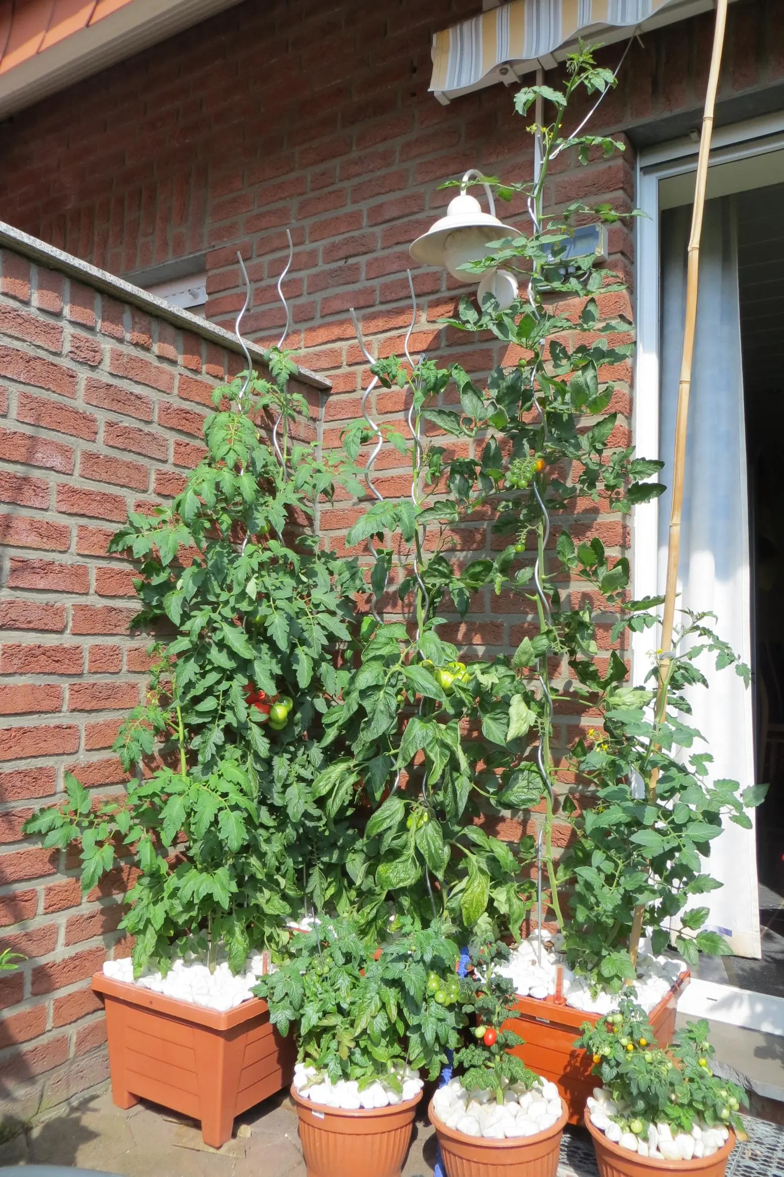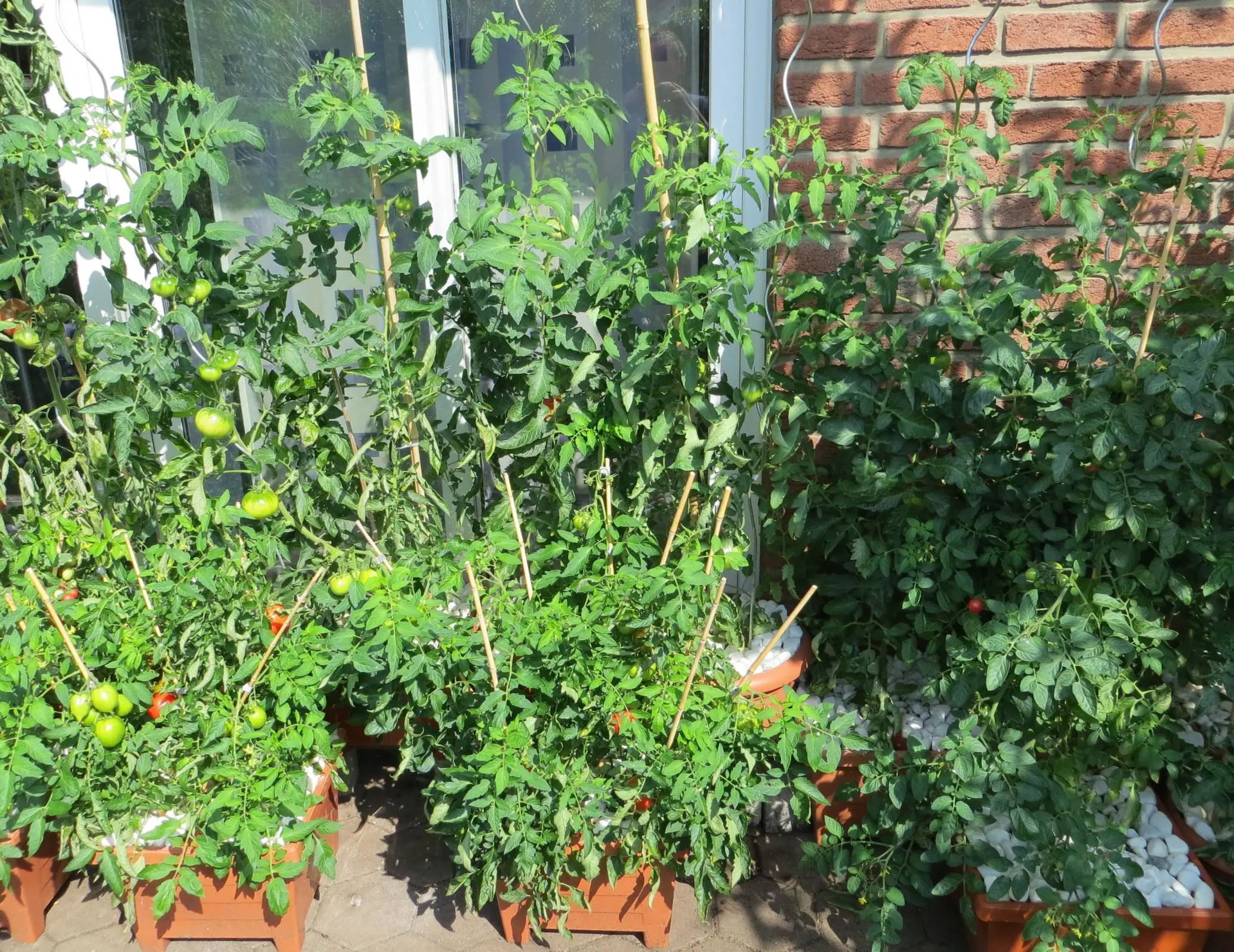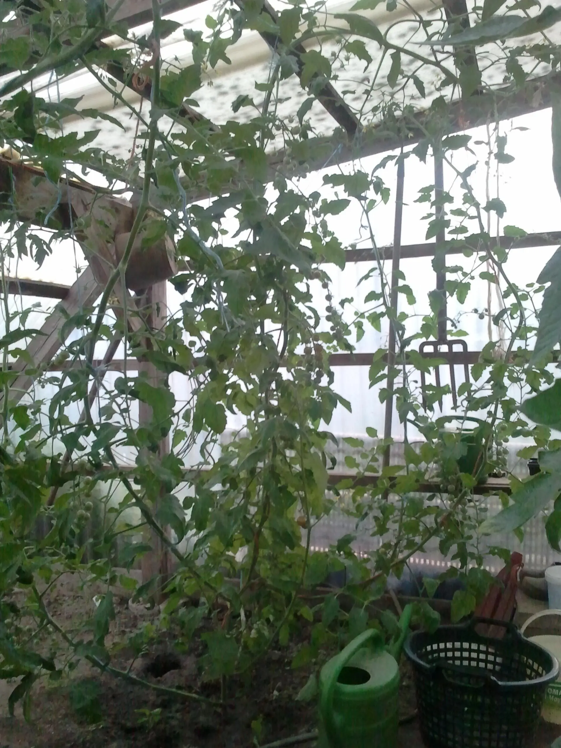 Das erste Exemplar im Beet hat die 2m bis zum Dach geknackt. Wahnsinn. Auch hier alles gut am fruchten.