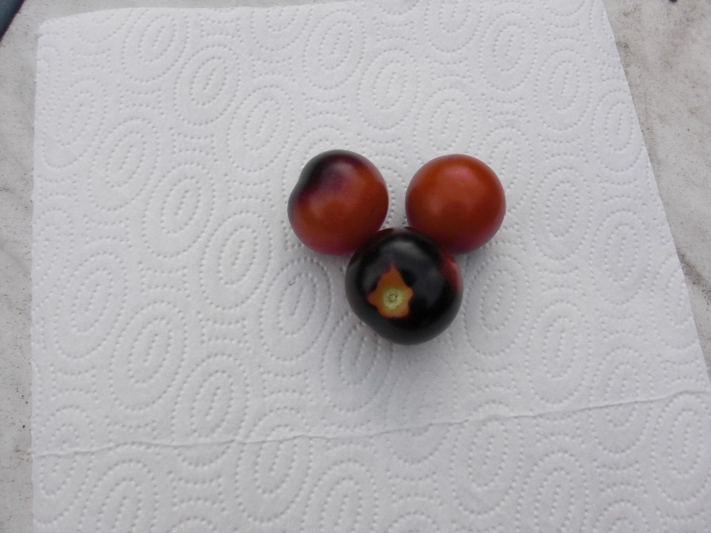 Wielange braucht eigentlich die Indigo Rose bis sie reif ist. Tomaten waren schnell welche dran, auch pottenschwarz - jedenfalls oben. Aber noch sind sie unterhalb grün und insgesamt sehr hart. Ich will doch endlich mal eine aufschneiden und kosten. :mad: