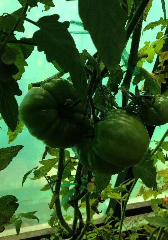 Die Pflanzen, die ein Dach über den Kopf bekommen haben, wuchern so sehr, daß ich mit dem Ausgeizen kaum nachkomme. Auch der Ertrag ist super.