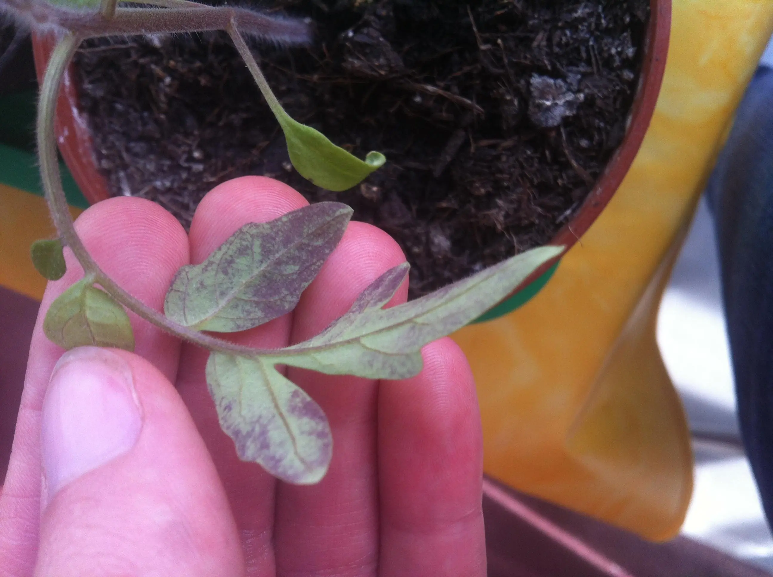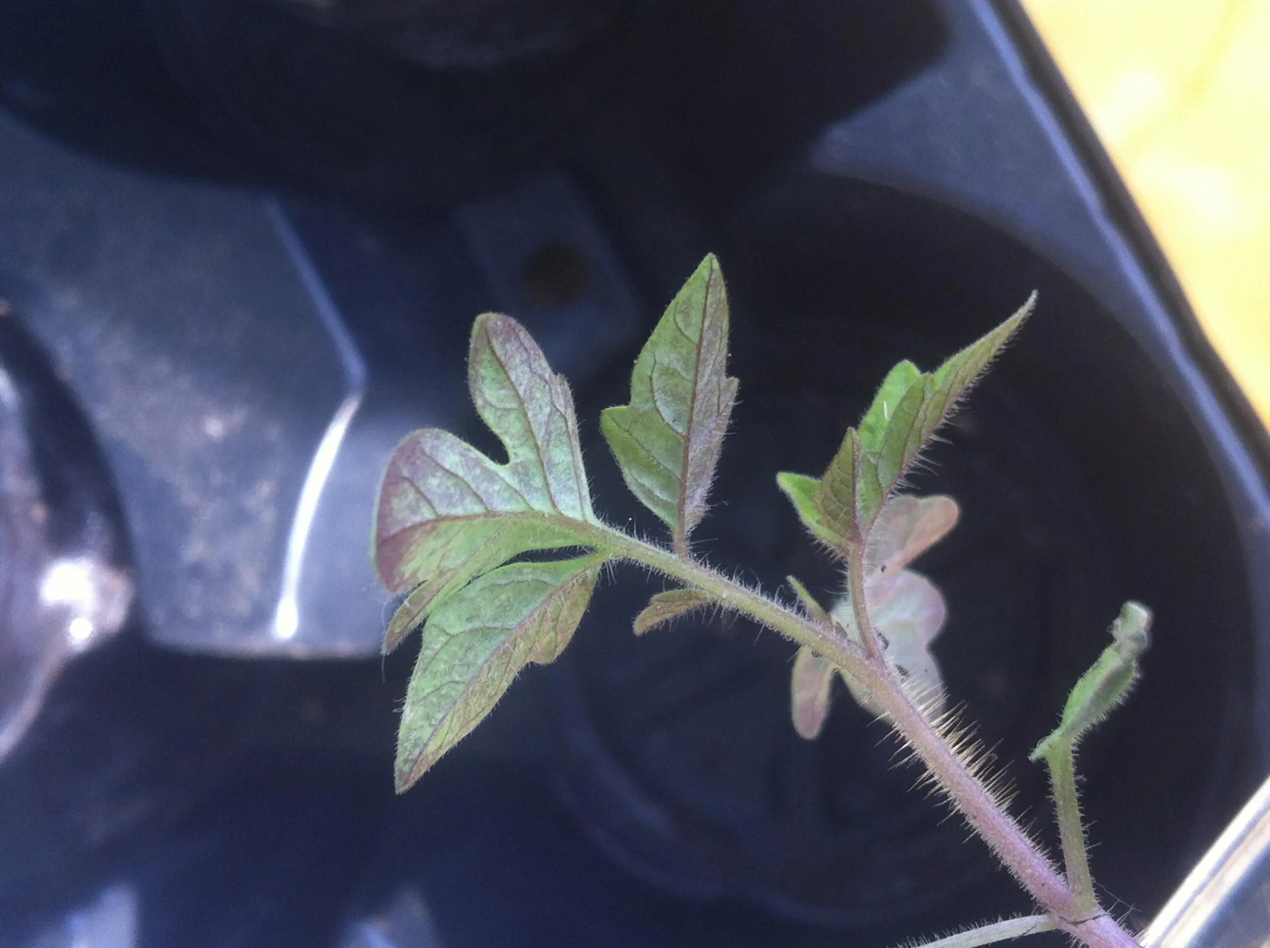 Ich hoffe mir kann jemand helfen: Ich habe heute festgestellt, dass viele meiner Tomaten an der Blattunterseite rot-violett verfärbt sind. Ein Kälteschaden kann ich ausschliessen, da sie über Nacht in die Wohnung kommen. Was könnte das sein?