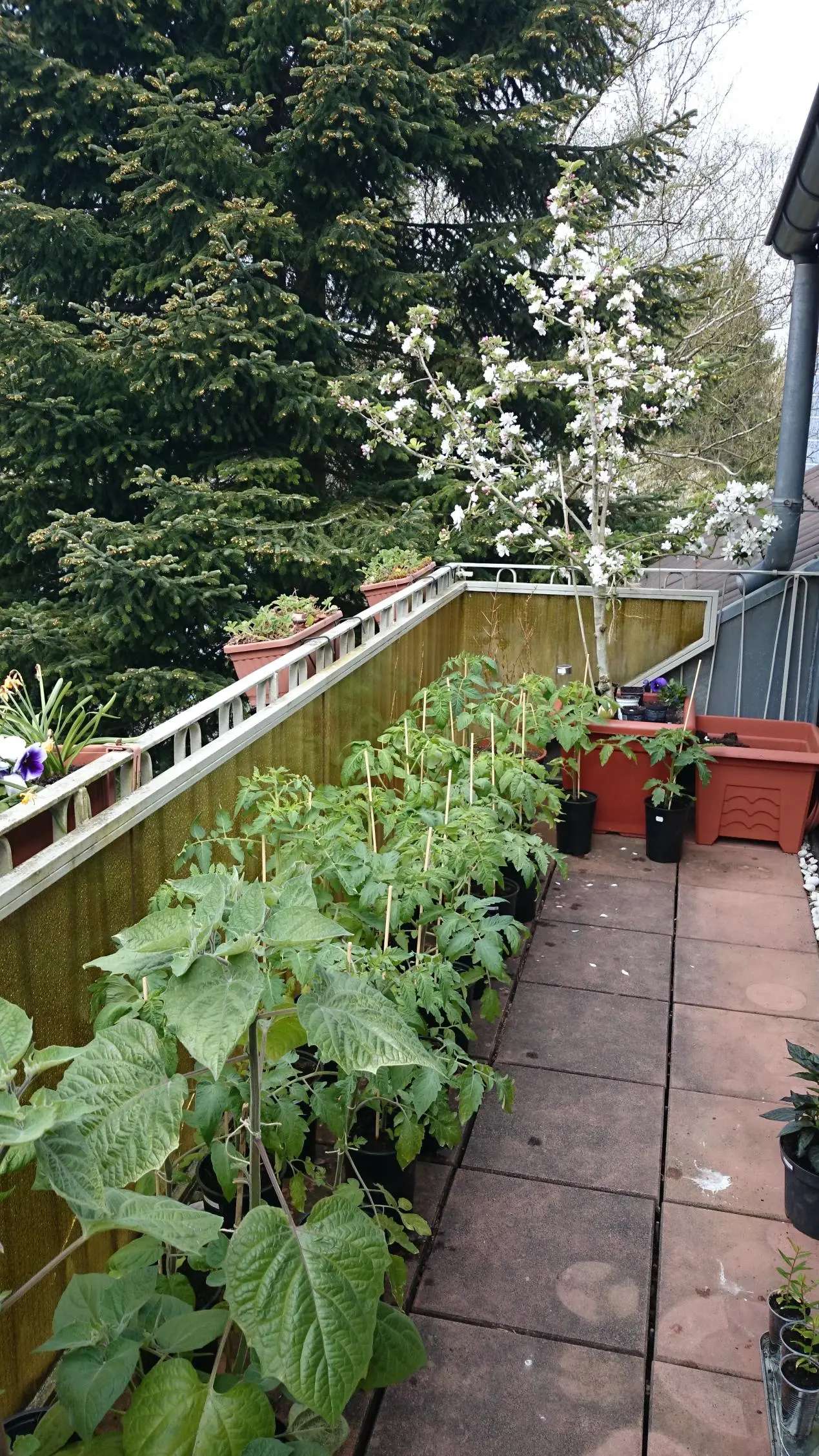Die angesagten Temperaturen sind wahrscheinlich für irgendwelche Freiflächen berechnet. Ich habe Innenstadtlage (schon mal etwas wärmer als angesagt) und dazu noch einen ganz geschützten Loggiabalkon. Alles in allem macht das nach meiner Beobachtung mindestens 5°C wärmer, als die Wettervorhersage gehauptet. Aber bei gemessenen 8°C hatte die vorderste Pflanze schon ein paar erfrorene Blätter, deshalb versuche ich, daß die Tomaten nicht draußen stehen, wenn die Temperatur in meinem geschützten Winkel unter 10°C fällt.