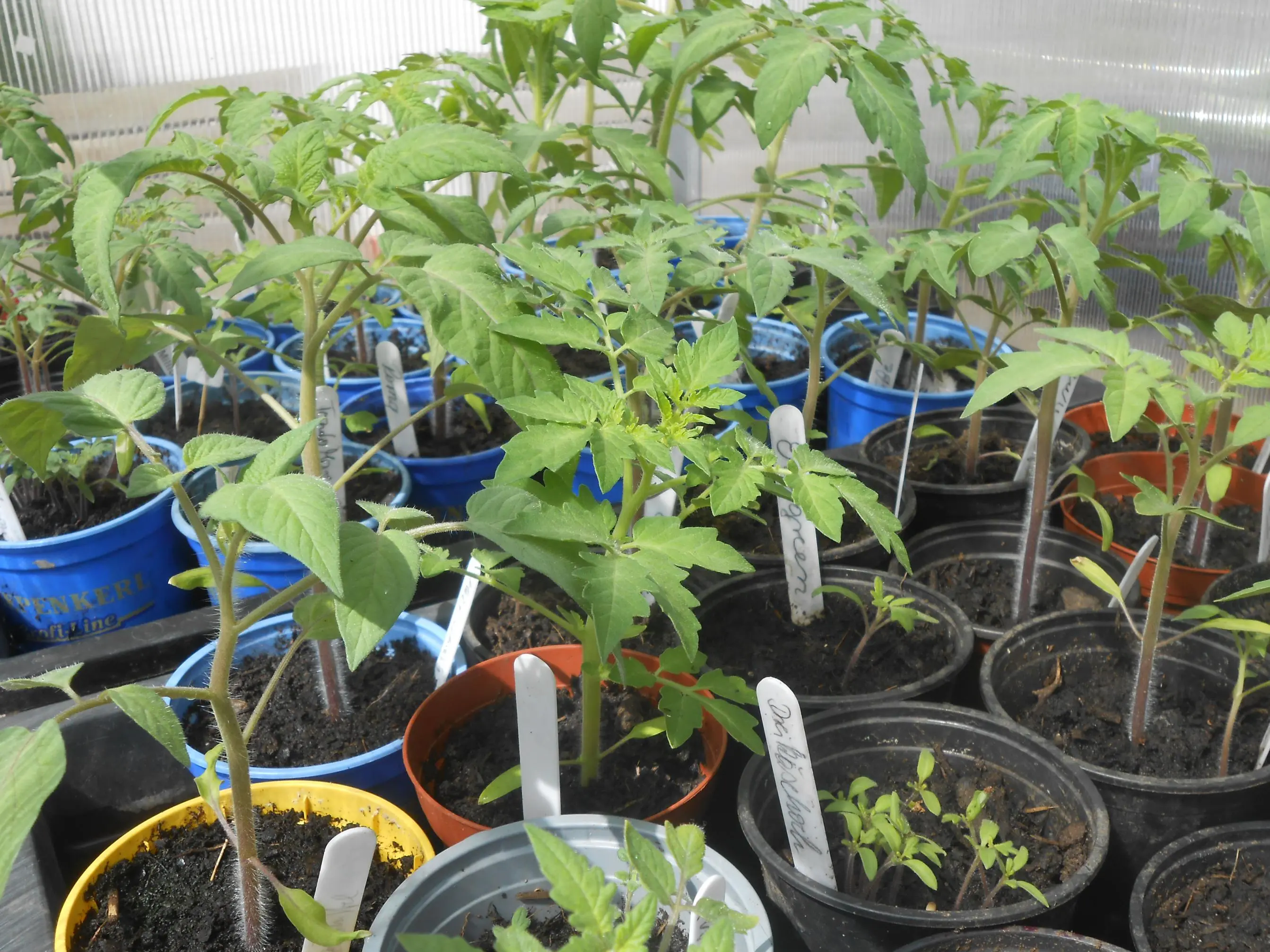 (Wobei ich diese Angaben seltsam finde. Außer dem Kaliumoxid glaube ich bei keinem Element, daß es so, wie angegeben, vorliegt. Stickstoff als Reinstoff wäre gasförmig, ist also bestimmt als Nitrat etc gebunden, Phosphorpentoxid möchte ich genau wie elementares Magnesium oder elementaren Schwefel nicht in der Erde, die ich mit bloßen Händen anfasse und in der ich Tomaten, die ich essen möchte ziehe, haben. Ich habe mich bisher mit den Erden noch nicht ausführlich beschäftigt, dieses ist der letztes Rest vom Vorjahr. Es war eine Tüte der Rewe-Hausmarke, die für mich den Vorteil hat, in einer Entfernung verkauft zu werden, für die ich mein beladenes Fahrrad schieben mag. Für die große Topfbefüllung hat mir mein lieber Vater 100l Erde von Raiffeisen mitgebracht. Wenn es also an der Erde liegt, dann sollte sich das Problem geben, sobald ich in die großen Töpfe auspflanze.)
