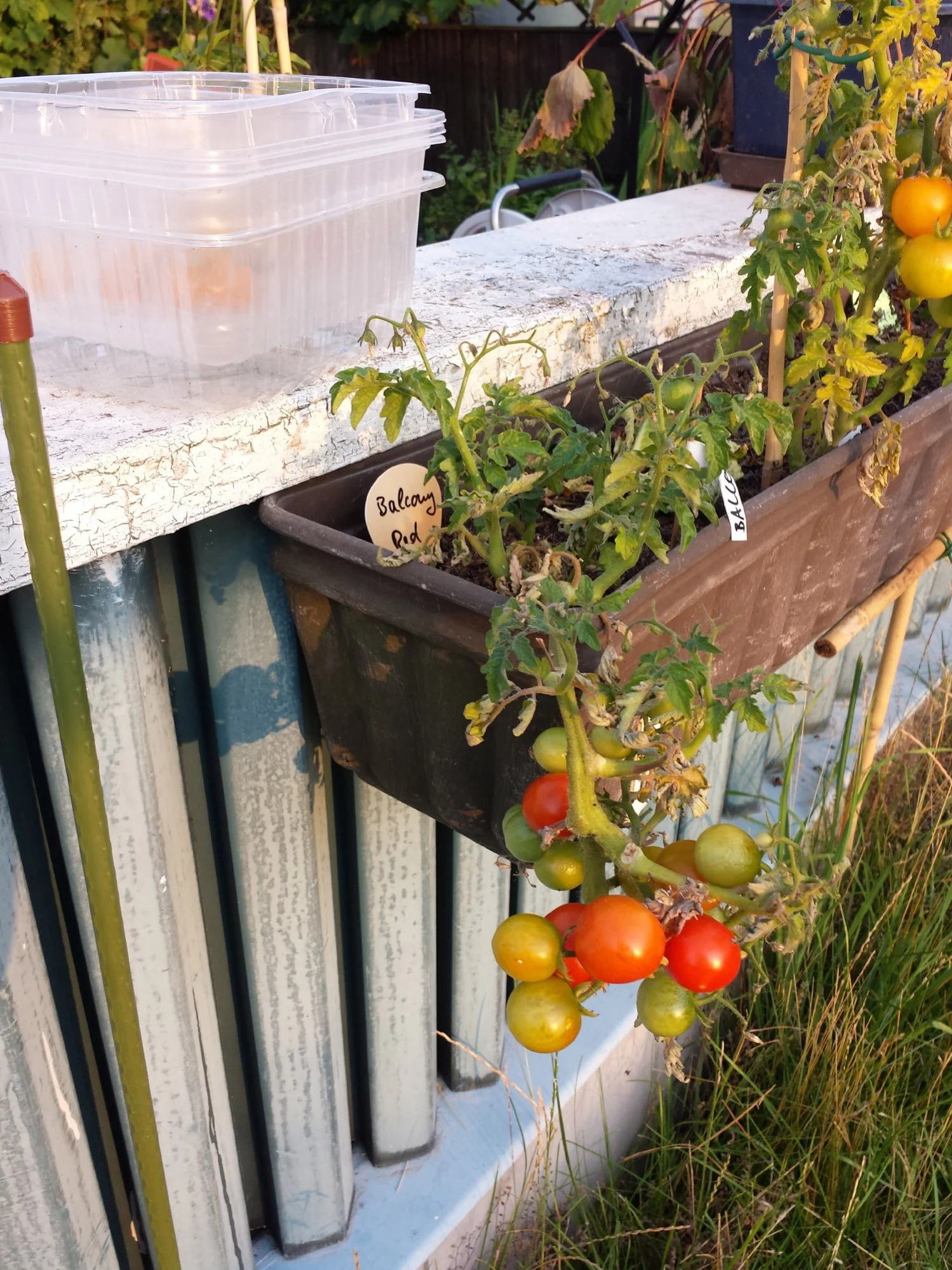 Nur die Hängetomaten wollen dieses Jahr nicht so richtig, der Kasten war wohl doch etwas klein, dafür dass ich nur alle paar Tage zum Gießen da bin. Die kommen nächstes Jahr wieder direkt auf die Terrasse an der Wohnung