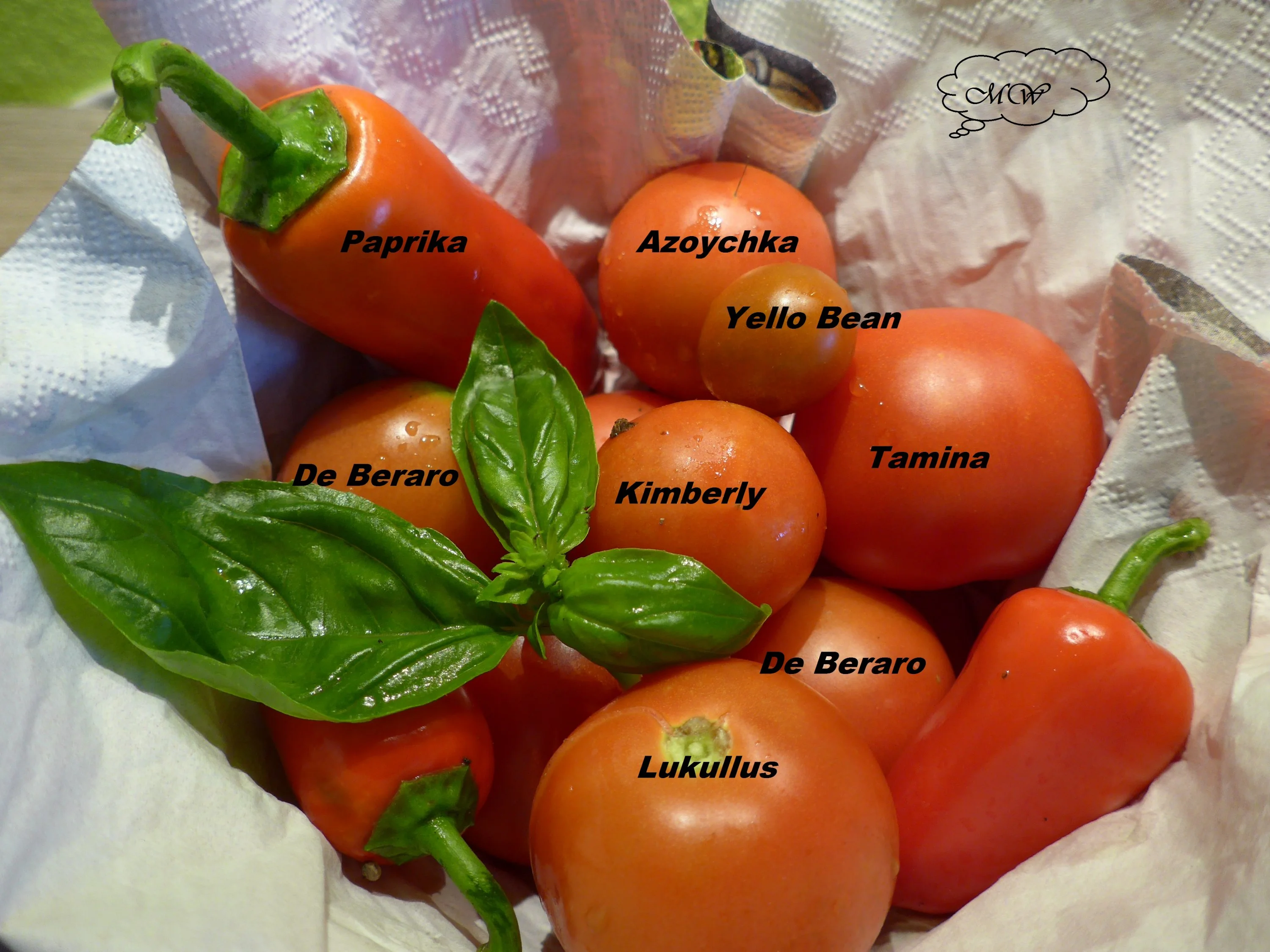 Eine kleine Tomatenernte zeige ich hier.Die Yello Bean pflanze ich nächstes Jahr nicht mehr,da sie total anfällig für Braunfäule ist.LG Monika