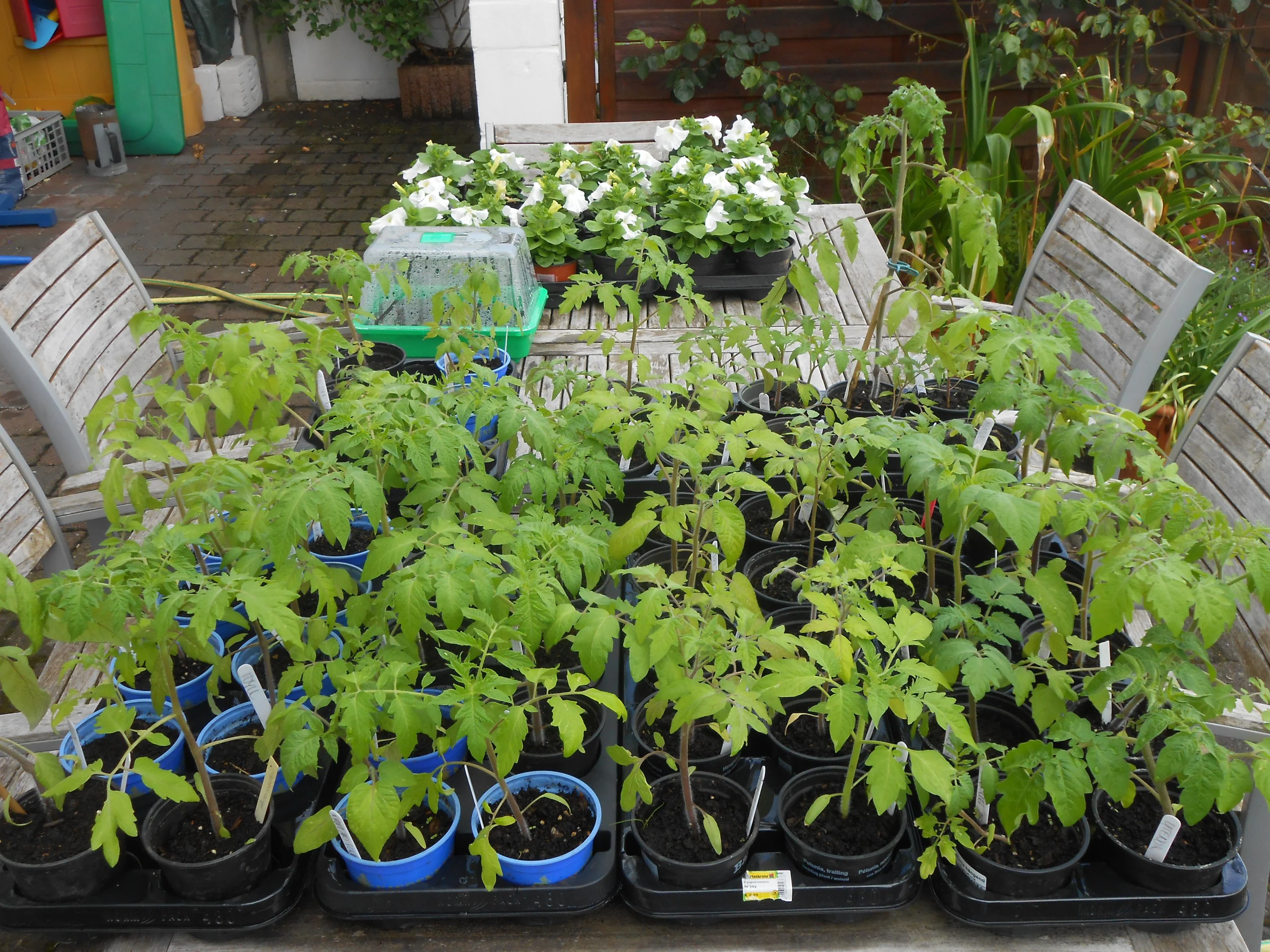 Abzüglich der Balkonsorten und Wildtomaten habe ich 50 Pflanzen gezählt. Ich werde immer bekloppter. Frage mich wohin mit den ganzen Schützlingen. Es werden wohl einige in die Blumenbeete einziehen müssen. :d
