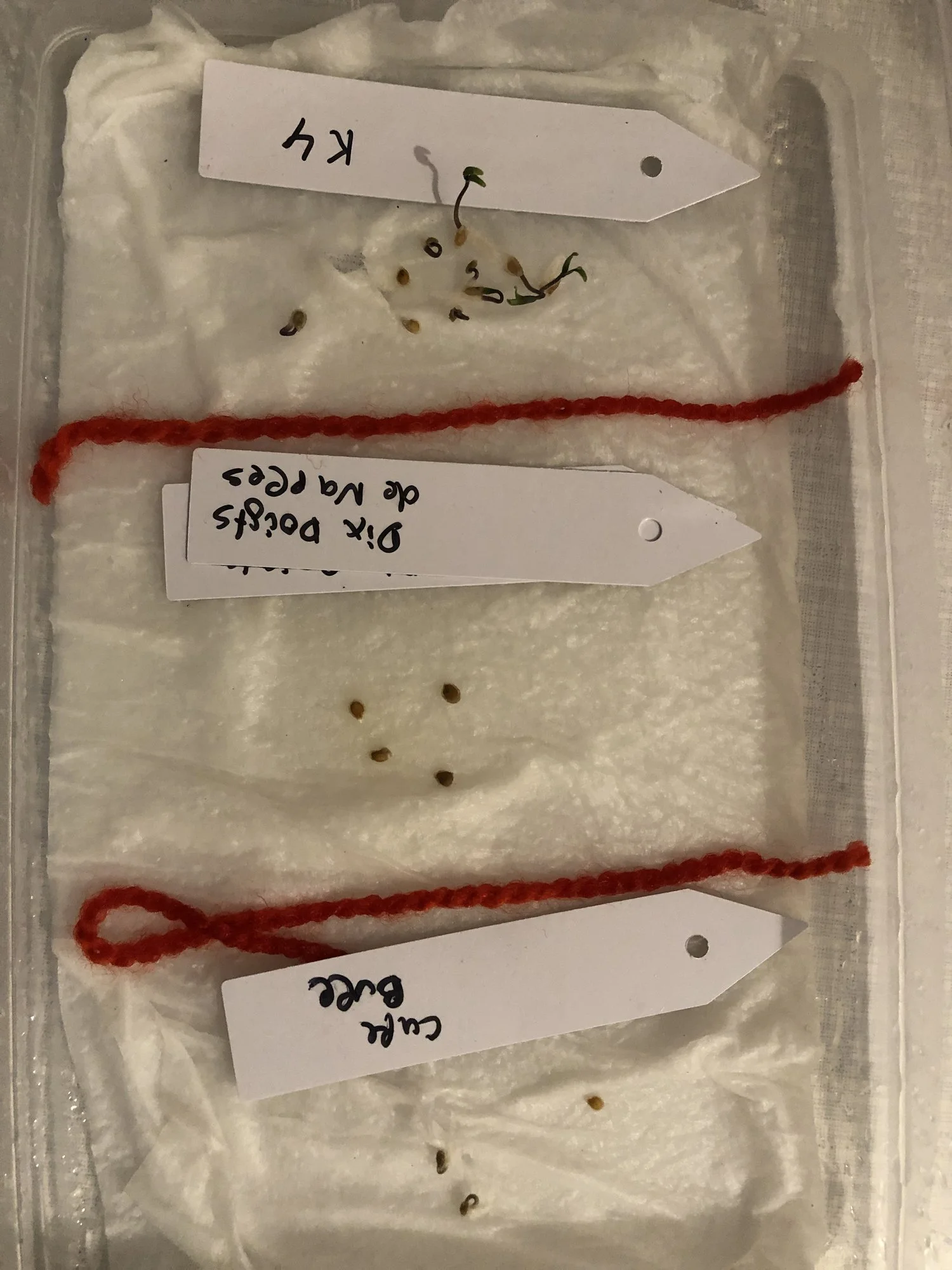 Statt „Keimdöschen“ geht es auch in der Aufschnittbox. Mit älterer Saat (6 Jahre und älter) verfahre ich so. Lassen sich auch gut Stapeln. Zur Entnahme verwende ich Zahnarztbesteck,