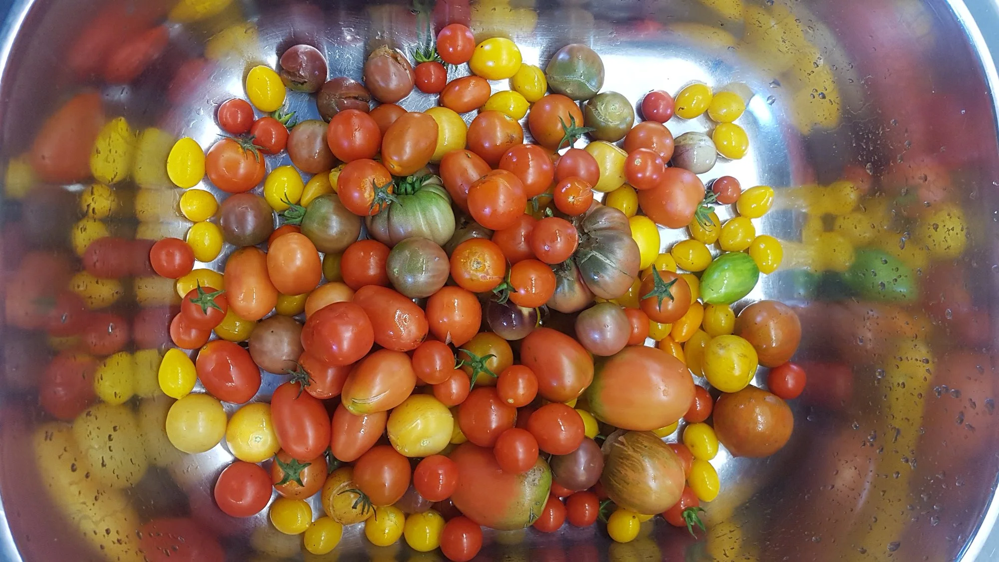 Es waren aber nicht mehr all zu viele dran . Die Tomis waren dieses Jahr ausschließlich in Kübeln und dafür war die Ernte gut. In die Kübel kommt jetzt Grünkohl und Rosenkohl, der schon in kleineren Eimern sitzt. Ansonsten säe ich Feldsalat und Postelein ein. Der Rest von den Eimern verschwindet im Garten in einer Ecke.Ich hoffe auf besseres Wetter nächste Woche, damit ich alles richten kann.