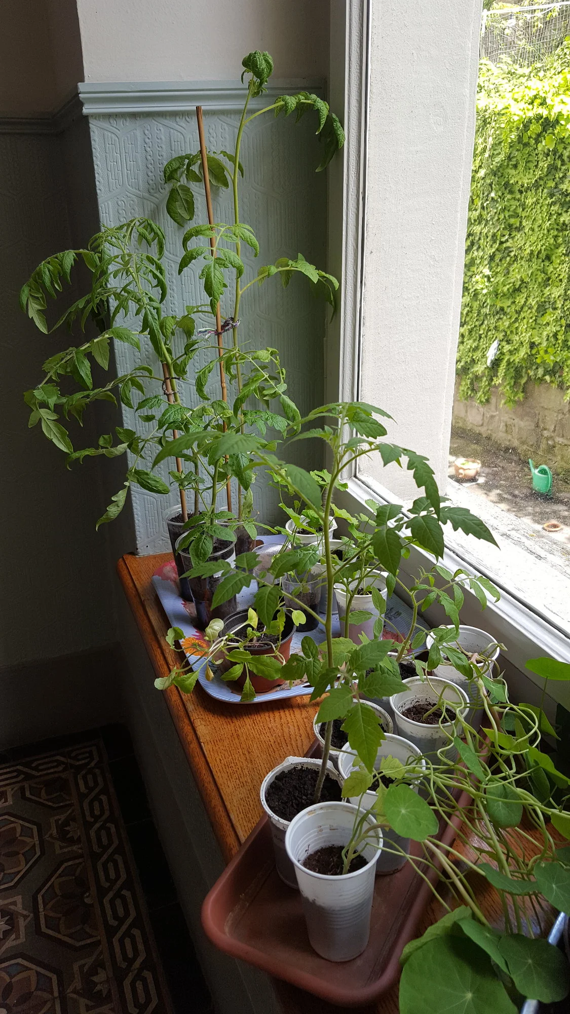 Tumbling Tom und Tiny Tim setze ich dann zugleich mit Aubergine und Chili einzeln in die Balkonkist(ch)en auf dem Fenstersims.