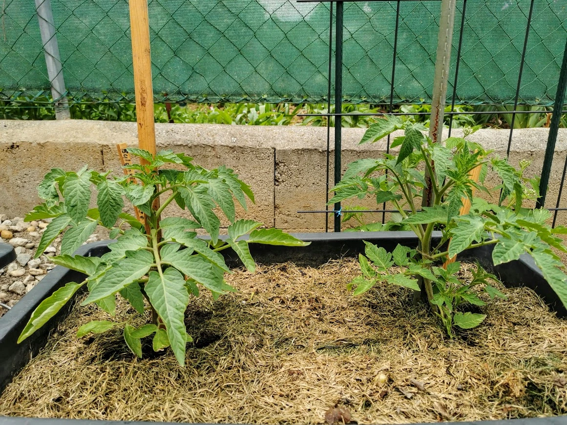 • Ich habe jeweils zwei Pflanzen in einem Mörteltrog mit 90l/70l - lasse immer die Hälfte der Erde vom Vorjahr im Trog, mische dann im Frühjahr Hühnerpellets drunter, gebe neue Pflanzerde dazu und pflanze meine Tomaten da rein.