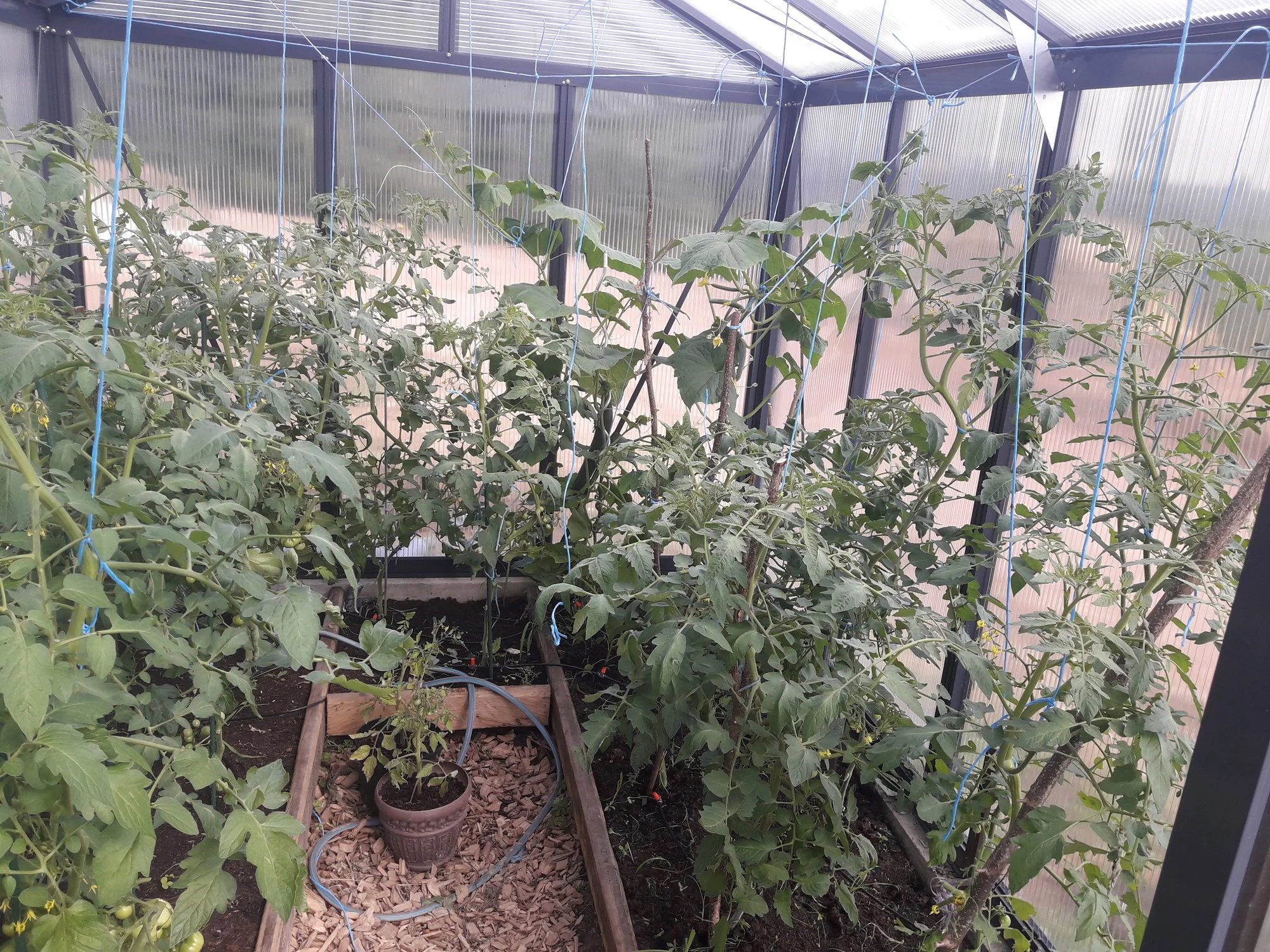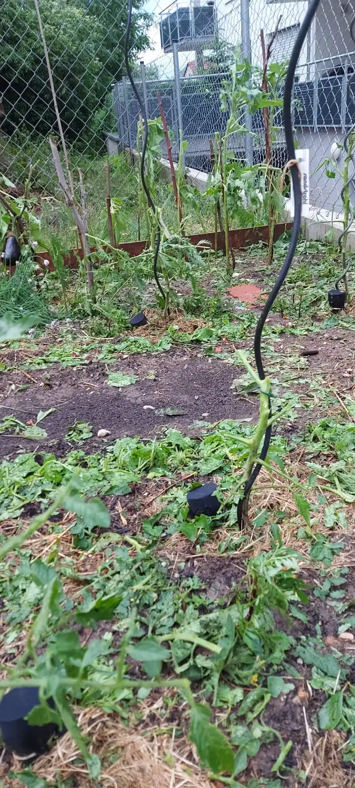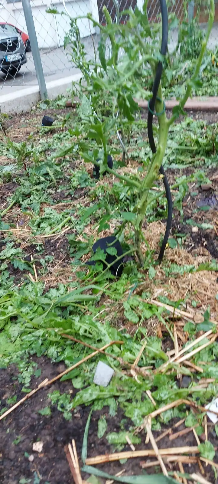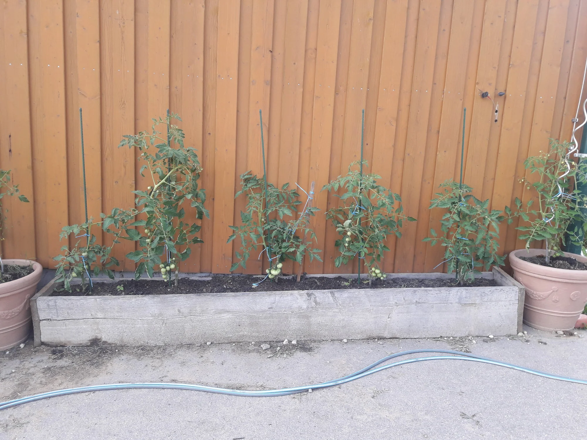 Die Tomis im Hochbeet sind auch zerfleddert ( wie vieles andere im Garten auch:-(