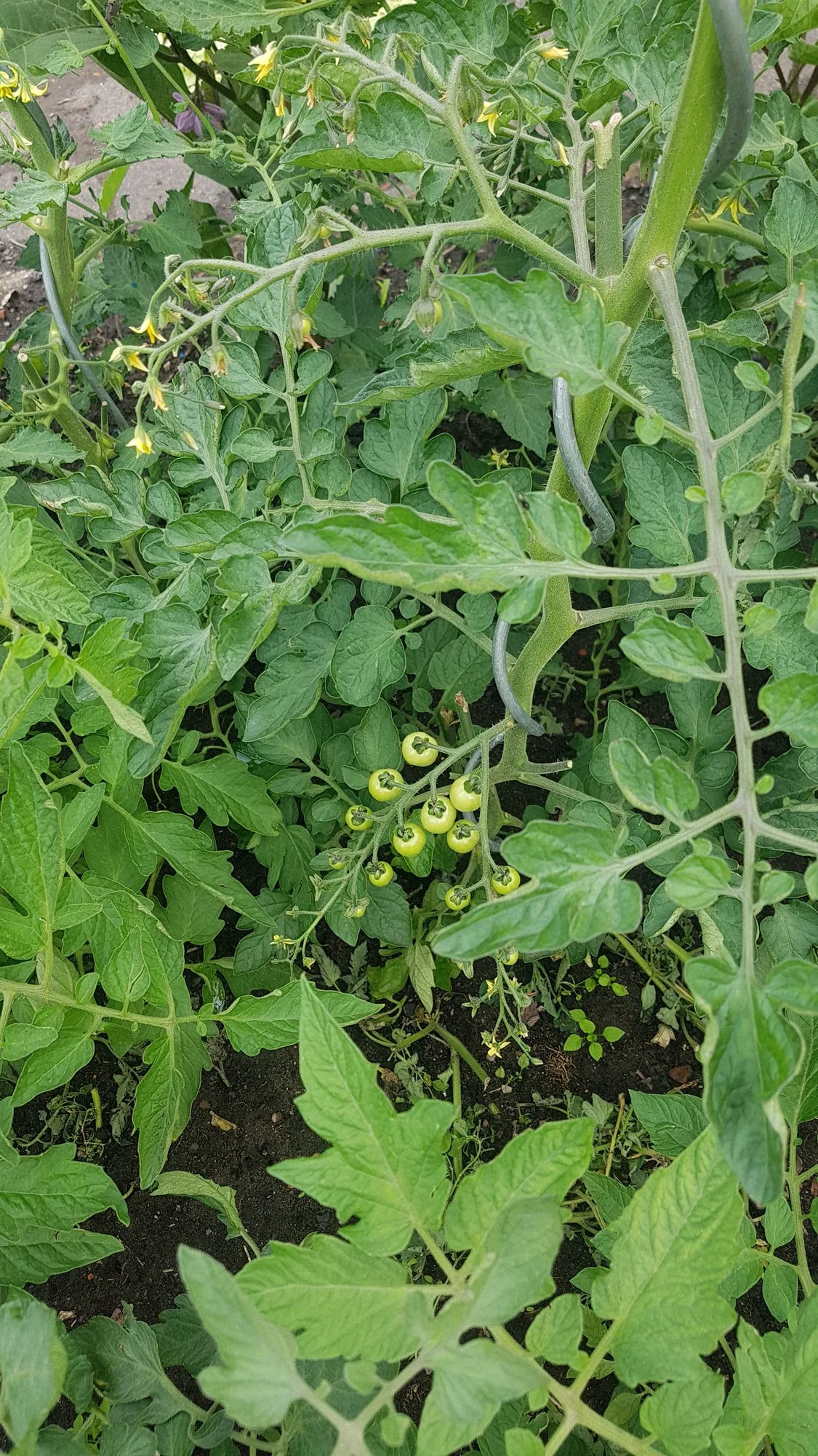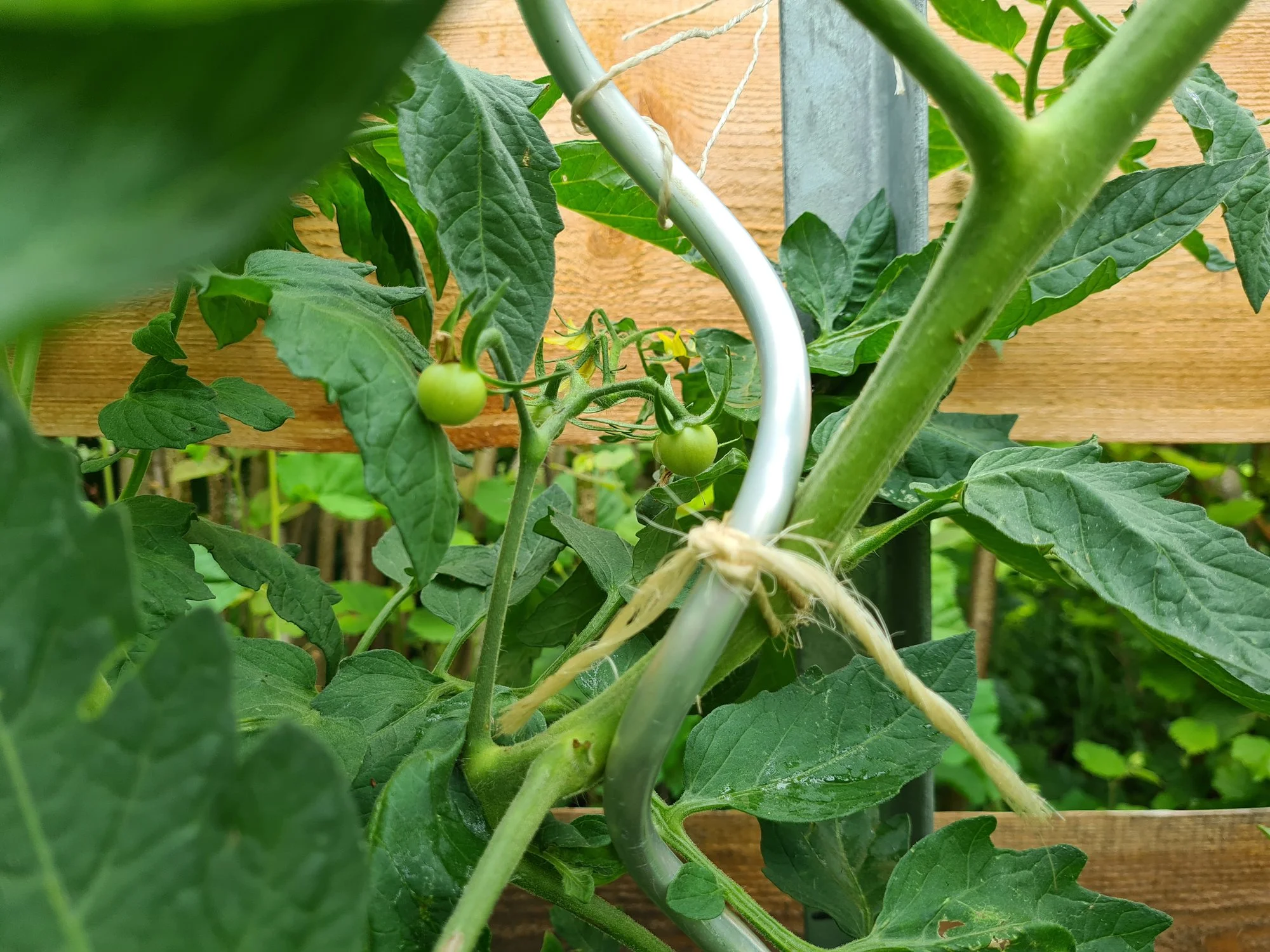 Das kannst du in meinem Thread sehen. Man zieht etwas über die noch nicht geöffneten Blütenstände, zum Beispiel Organza Säckchen oder Nylonsocken. Verschließt das mit einem Faden oder Ähnlichem, so dass keine Hummel mehr an die Blüten kommen kann und sie bestäuben. Wenn sich die Blüten dann öffnen dann schüttelt man sie per Hand, damit der Blütenstaub der Pollen auf die Narbe fällt. Das funktioniert, weil Tomatenblüten zwittrig sind d.h. sie haben weibliche und männliche „Geschlechtsteile“. Haben sich die Früchte gebildet, entfernt man das Säckchen und markiert den Fruchtstand mit einem bunten Faden.