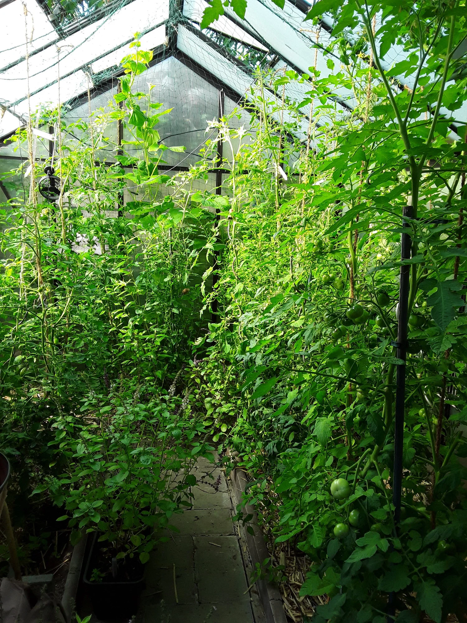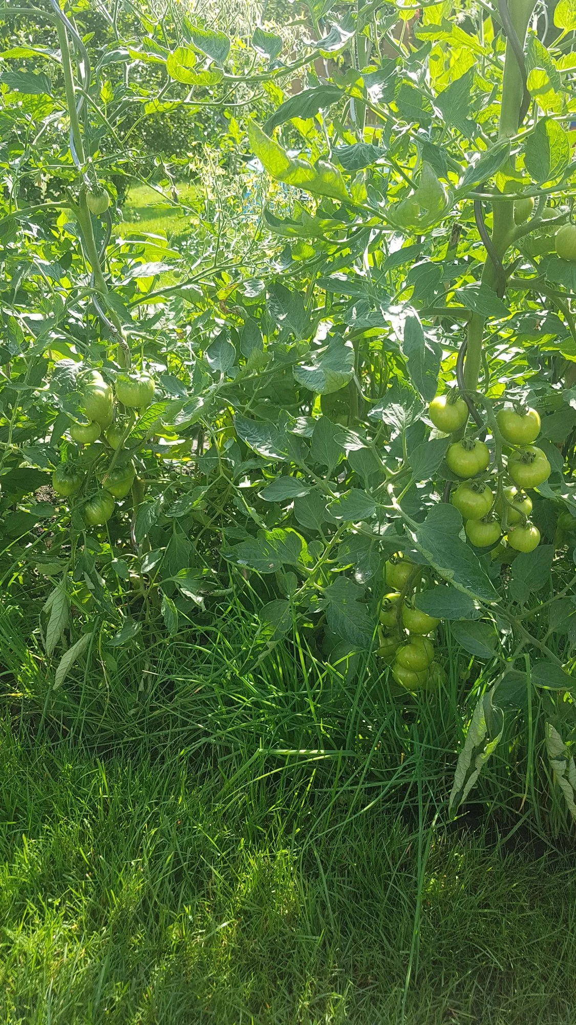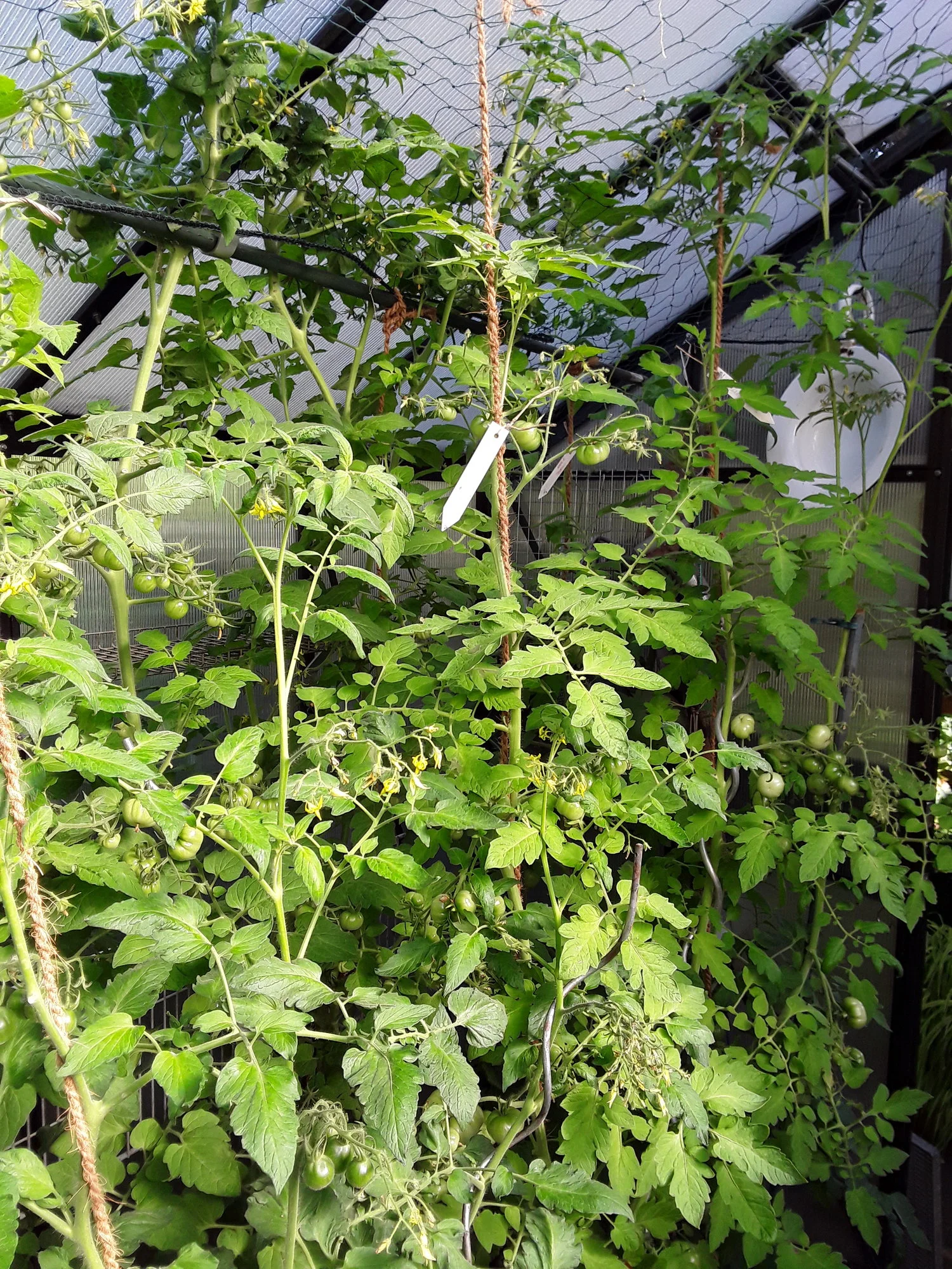 Der Tomatendschungel, hatte in letzter Zeit viel um die Ohren und wenig Zeit für den Garten, das haben sie schamlos ausgenutzt. Die ersten stossen jetzt ans Dach und werden in die Netze umgeleitet