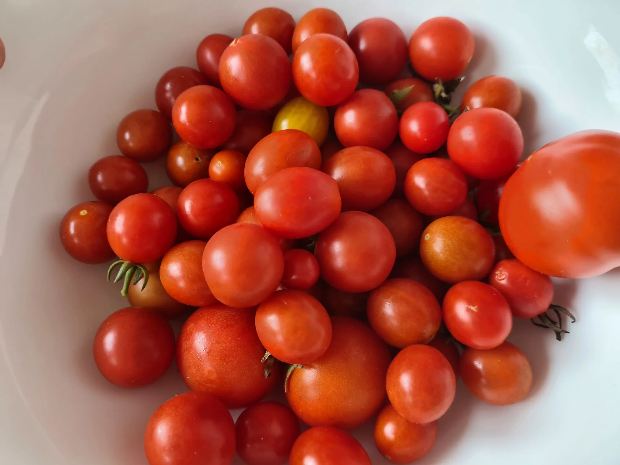Das war eine Tomate aus dem Supermarkt, die mir im Winter ganz gut schmeckte. Ich wollte mal schauen, wie sie im Sommer schmeckt. Das hier ist die F2 Generation. Die andere Pflanze hatte normale Cherrys, die aber anders schmeckten.Der Hinweis war sehr gut, @Tubi